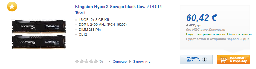 С максимальной скоростью и низкими задержками, то берем память с чипами Samsung B-die. Ценник 10-12 тыс. рублей за 2x8 Gb и 20-22 тыс. рублей за 2x16 Gb.