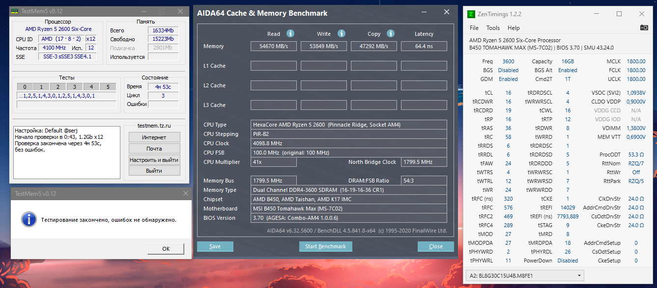 Вообщем я уже 3 день в попытках найти хоть какую нибудь стабильность и успехи так себе даже с биосом с 06 агесой, он выдает ошибки в стандартном конфиге в тм5 с safe пресетом для 3600 я не знаю чем тайминги там не безопаснее