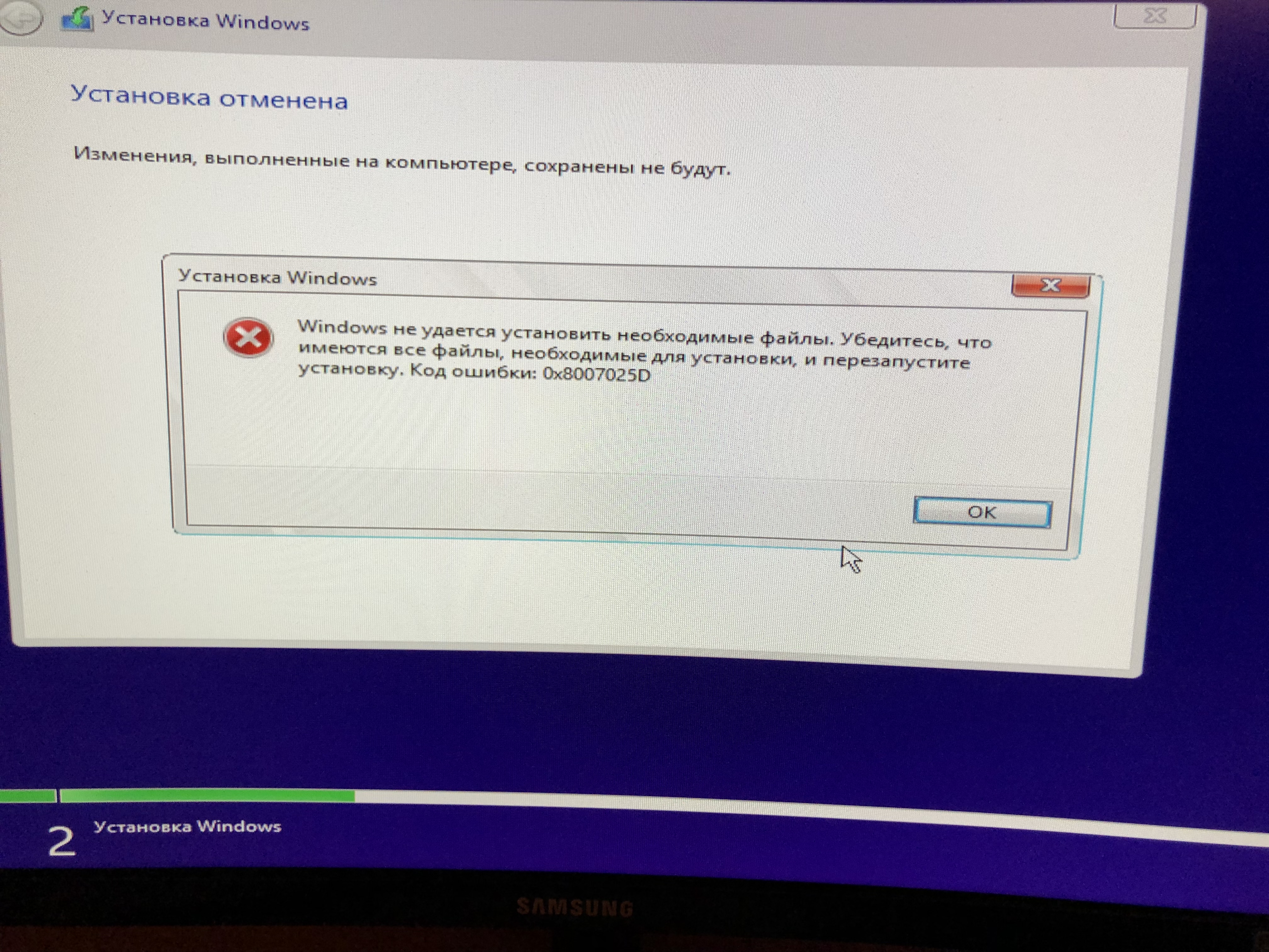 В общем, поставил плашки в 1 3 слоты, сбросил биос, но дальше него система не пускает, винда сразу ловит крах. В 2 4 слотах тоже всё весело... Установил плашки в них, сбросил биос, включил XMP и пошёл ставить винду с флешки. Где-то на 20-25% установки система уходит в BSOD. Проверено 3 раза. При 2133 вылезает такая ошибка и соответсвенно винда не ставится.
