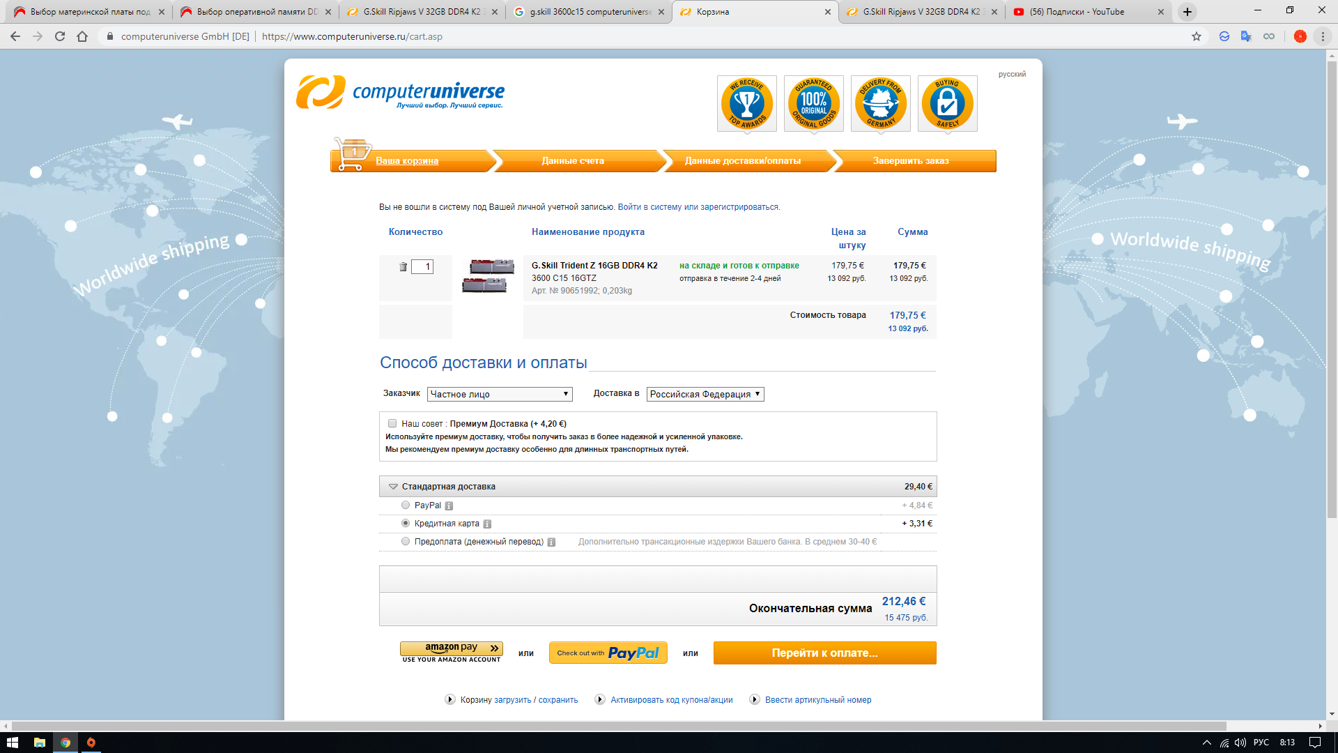 ну это уж кто как ищет, самый дешёвый b-die что я недавно видел(в последний месяц-два), это 332 евро за 64Гб корсаров 3600/18, да и мой комплект RGB PRO мне обошёлся не намного дороже. Разумеется не факт что я сейчас такую цену найду, что касается доставки, то тут каждый по разному её компенсирует, кто-то покупает что-то для кого-то, покупают параллельно что-нибудь на перепродажу, или просто покупается несколько вещей чтобы размазать доставку по нескольким вещам. У амазона доставку может быть всего 18-20 евро, это опять же далеко не 3к