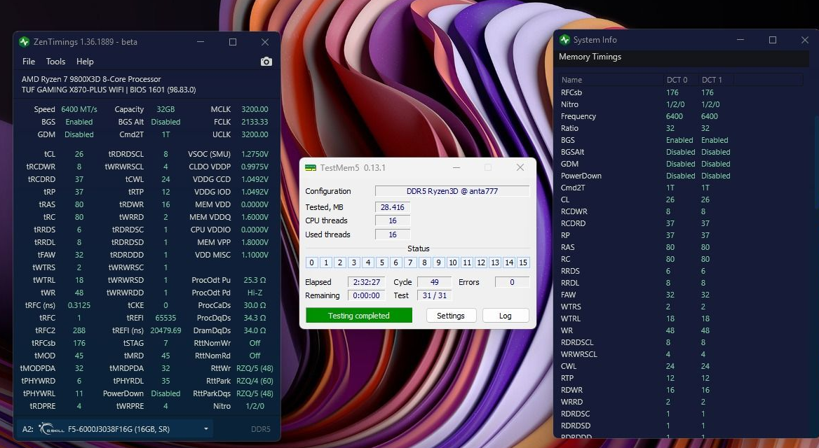Приветствую. Пронаблюдал странное поведение не 9800x3d и памяти 6100 с фабрикой 2200. Обычно GDM включено. Выключил, увеличив RDRDscl и WRWRscl с 4 до 5 (на 4-х не было запуска платы). Да, латентность чуть уменьшилась. С 62нс до 60.5нс примерно. ОК, круто.