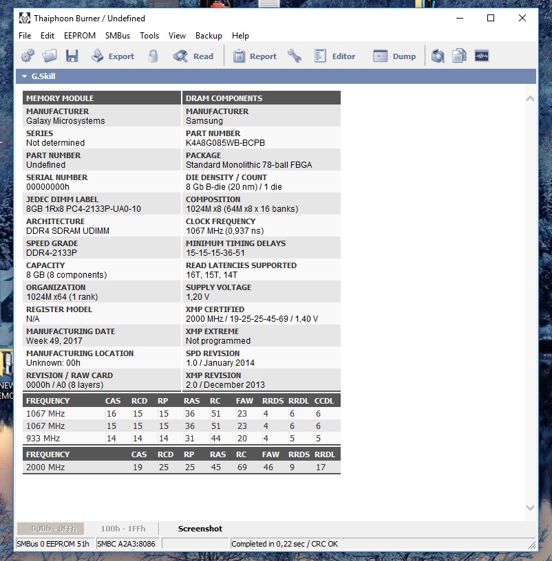 [img]Ссылка на скрин[/img] Для сбора статистики по установленным чипам памяти просьба прикладывать скрины программы Taiphoon Burner и указывать напряжения на DIMM, IO и SA![/color]
