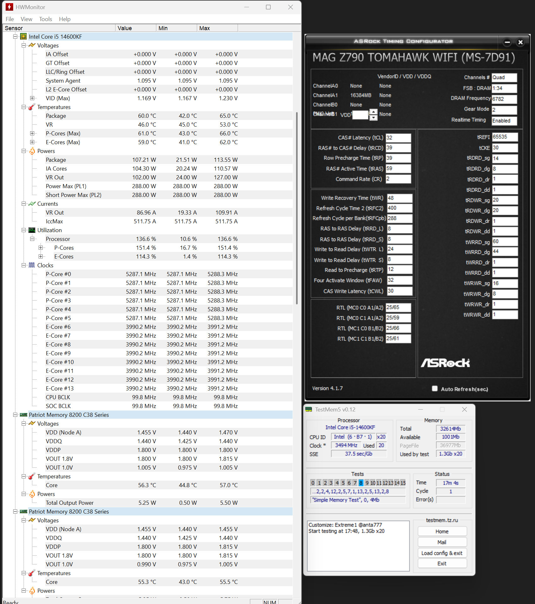 Мой пк: i5 14600kf - на башне Macho rev B. MSI z790 ТомаГавкай WIFI (ddr5) Patriot Extrime 5 8200 16x2