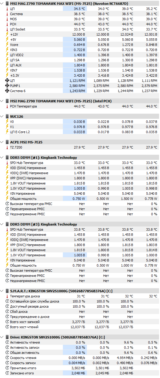 Некоторые тайминги (вторичные и троичные) предельные чуть поднял на несколько шагов для стабильности. Ночное прохождение фар края подтвердило стабильность) ну тесты само собой тоже. Напряжение поднял только на памяти 1.4в, попытки крутить другие напряжение сопутствующие, приводят как ни странно к ошибкам, поэтому стоят на авто. Возможно, если поиграться с напряжениями, можно и выше добиться, но этот мизер не стоит времени потраченного на это) Итог, Adata xpg lancer blade ddr5-6400 2x16 гб при частоте в 6800: