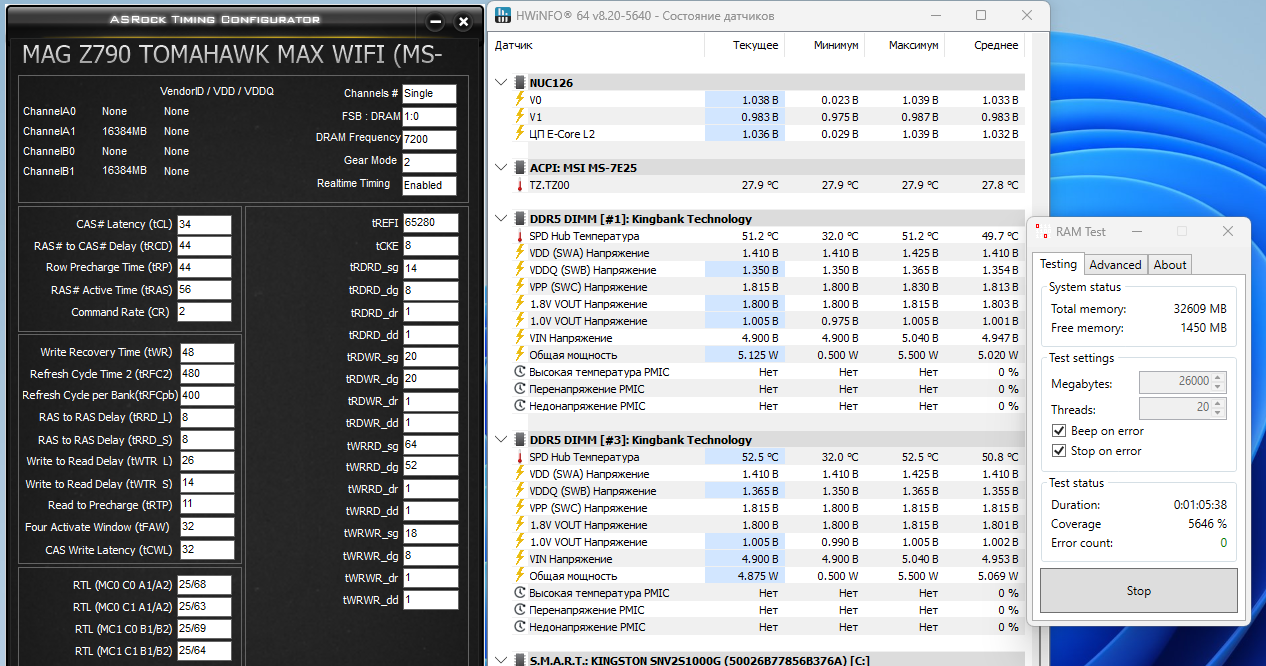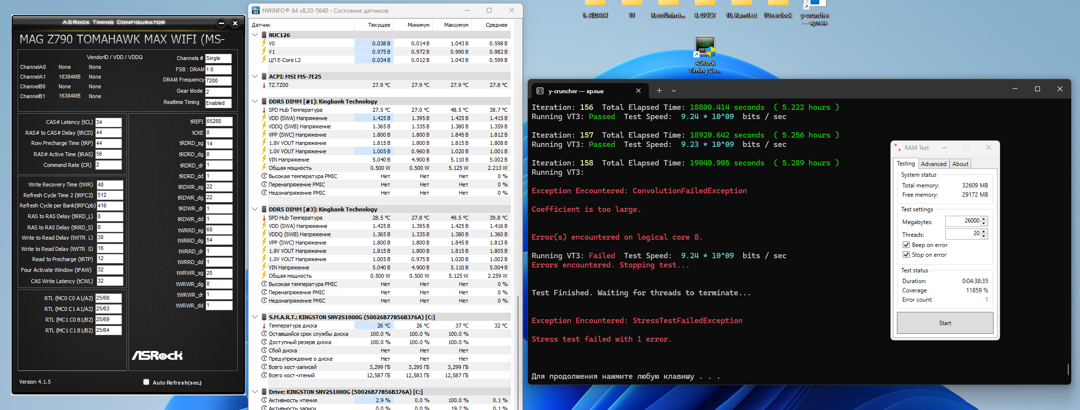 Если точно проц стабильный, и точно у памяти в TM5 на длительное время нету ошибок, скорее cpu vddq крутить искать на каком значении стабильнее. Между sa и vdd2 также дельту соблюдать, если верить информации в шапке.