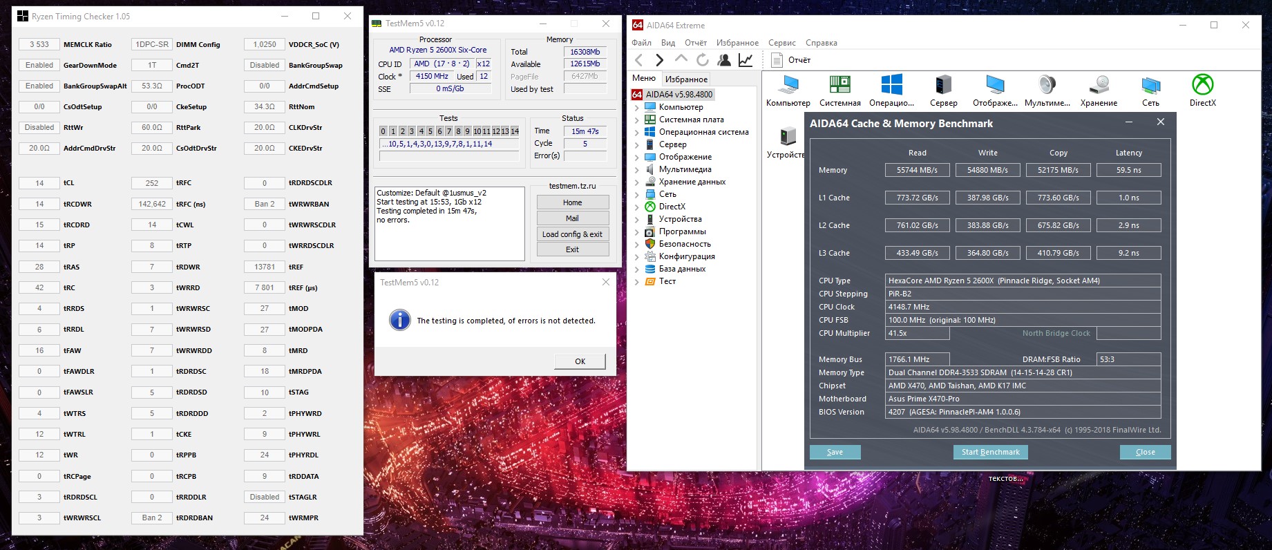Частота и тайминги Основные показатели скорости памяти. Чем выше частота памяти, тем лучше. Однако гнаться за частотой во вред таймингам не имеет смысла (и наоборот). Выбор частоты на DDR4 возможен от 2133 до 5333 Мгц. Частоты выше 4400 Мгц доступны как правило только на определённых оверклокерских платах и с отборными модулями (а также с хорошим контроллер памяти процессора, который сможет подобное). Хорошей частотой в разгоне является 4000-4400 CL17 и ниже, выше уже могут выше только отборные модули. Для платформы AM4 частота оперативной памяти особенно важна, т.к. к ней привязана внутренняя шина передачи данных Infinity Fabric (работающая на половине частоты оперативной памяти). Дело в том, что эти многоядерные процессоры состоят из двух модулей по несколько ядер, которые взаимодействуют между собой через шину под названием Infinity Fabric – а она тем эффективнее, чем быстрее у вас ОЗУ. Частота влияет в первую очередь, но это не единственный фактор. В связи с этим очень желательны модули, которые в разгоне могут достичь хотя бы частоты 3200, при этом частота Infinity Fabric будет уже вполне удовлетворять потребности процессора. Частоты выше также растят производительность, но требуют бОльшие вольтажи, лучших материнских плат и отбора памяти. Прирост от 3200CL14 -> 3466CL14 есть, но как правило настолько затратный по времени, что не покрывает затрат на его достижение. Хотя сейчас, ситуация лучше и уже многие Hynix\Micron могут взять 3200\3333 на AM4, B-die уверенно работает на 3600-3800. Одинаковая память на более низких таймингах (при одной частоте) будет эффективнее. Т.е. 3200 CL14 > 3200 CL16, как пример. При правильной настройке вторичных и третичных таймингов, можно «добрать» еще до 45% производительности в синтетике и до 25% в играх. Таблицу задержек в наносекундах можно посмотреть тут.