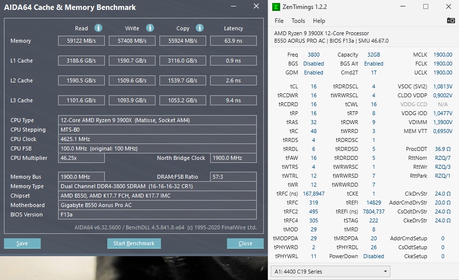 Сейчас 5800х + x570 Unify MSI (bios 7C35vA86(Beta version)) Память таже: А2 B-die самсунг одноранг 4 плашки по 8 (16Gb DDR4 3600MHz Kingston HyperX Predator (HX436C17PB3K2/16) (2x8 KIT) покупал в августе 2018, вроде в то время были нормальные B-die что прочитал) Совершено не получается добиться оптимальных показателей, сейчас работает 3600 с таймингами 18-18-18-39 и она по тесту аида хуже того что было на предыдущем конфиге