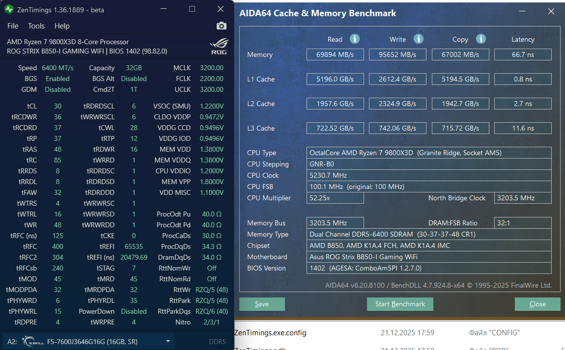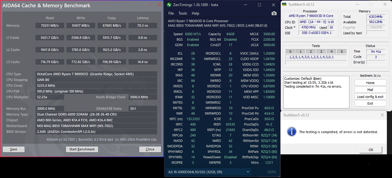 Всем привет, рад быть у Вас на форуме. Сегодня наткнулся на первую страницу этой темы, и немного поигрался с разгоном озу своего пк, и хотел бы попросить знатоков о рекомендации\совете\отзыве, что можно будет попробовать, изменить - чтобы получить лучшую производительность, я смотрю у некоторых результаты очень хороши по латенции, я никак не могу ее сделать максимально ниже. Пока писал сообщение запустил параллейно тест в ОССТ CPU+RAM large+extreme прошло 15мин, 0 ошибок, осталось еще 45мин. Пробовал запустить планки в 6200Mt и 2200fclk, пк работает, но не проходит тест в MEMTEST5 сразу ошибка, в OCTT также сразу список ошибок летит. Поэтому остановился на 6000Mt
