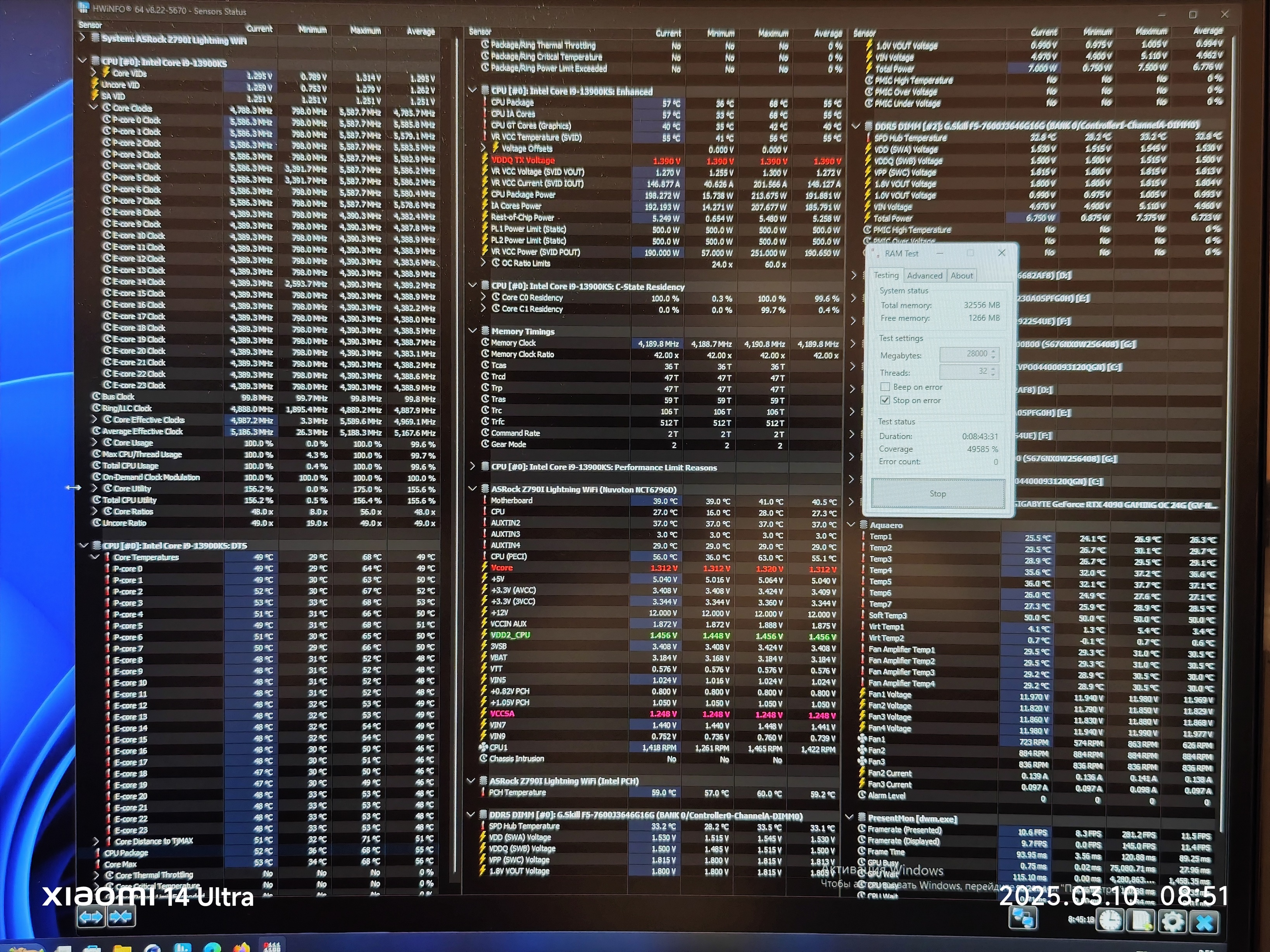 Одни мучения с этой DDR5. Отказывается стабилизироваться на частотах выше 8200, но почему-то прекрасно отзывается на снижение CL. Выставил наобум VDD 1.64 в биосе. Сразу поймал полный стаб. Если на этом же напряжении поедет 8200С32, будет замечательно.