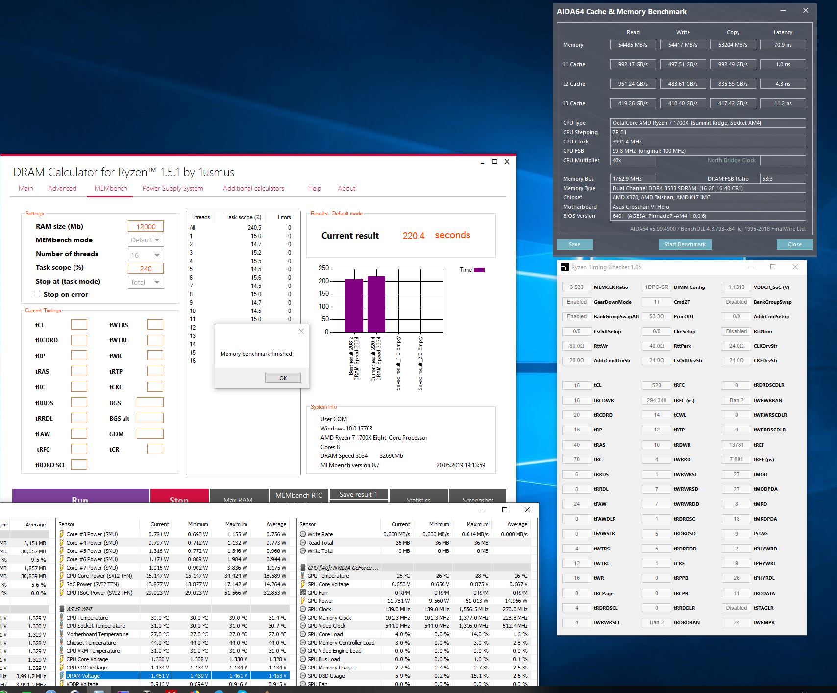 Я рад буду если кто с нашего форума сделает 3700 на таких красивых таймингах =)) и скинет свои настройки,чтоб самому попробовать 16-17-17-36. А пока только 3553 с таймингами выше.