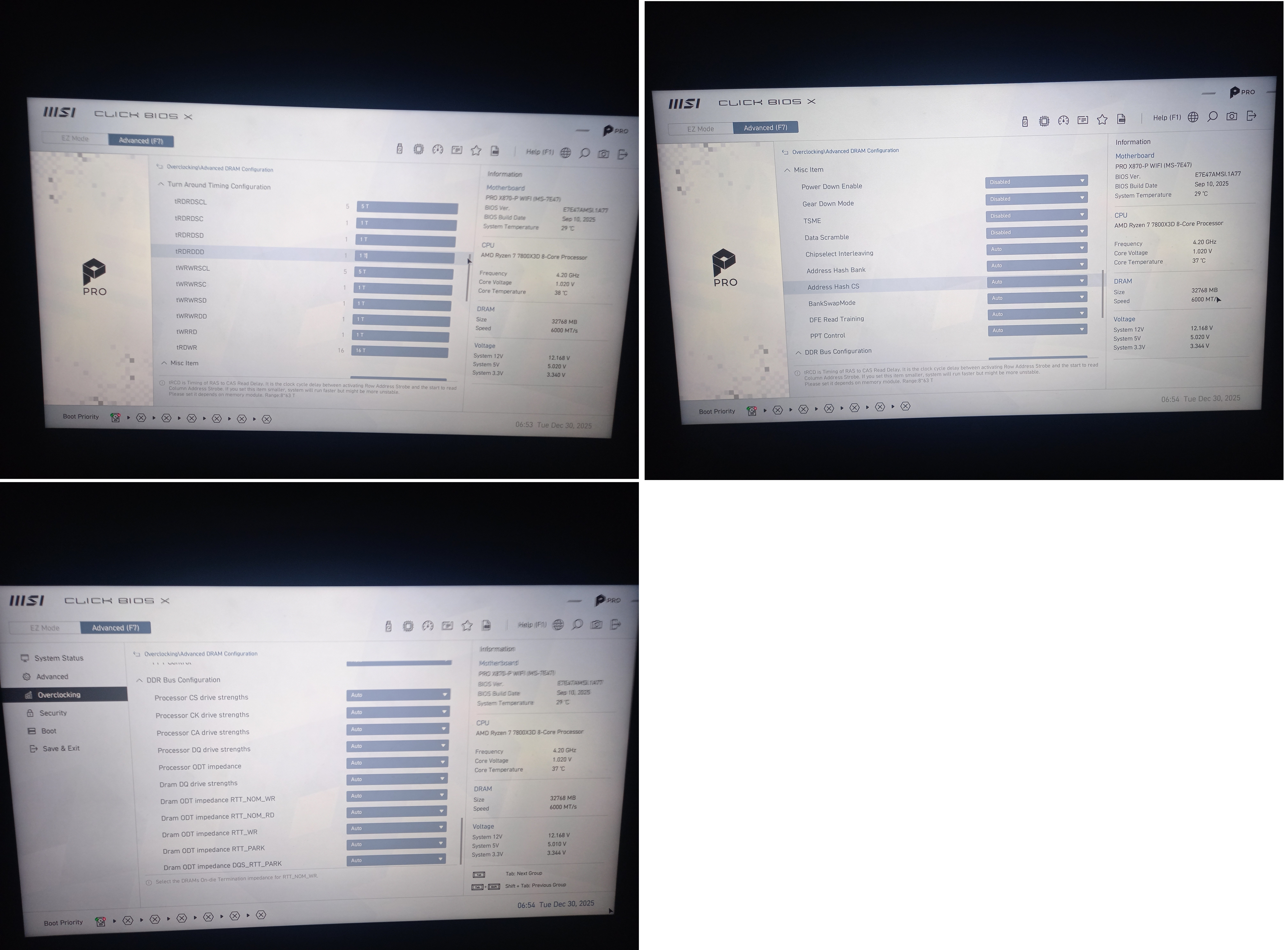 Скрины из Bios материнской платы MSI PRO X870-P WIFI (Bios версии AMI BIOS 7E47v1A77 2025-09-11, скаченный с оф. сайта MSI на странице мат. платы):