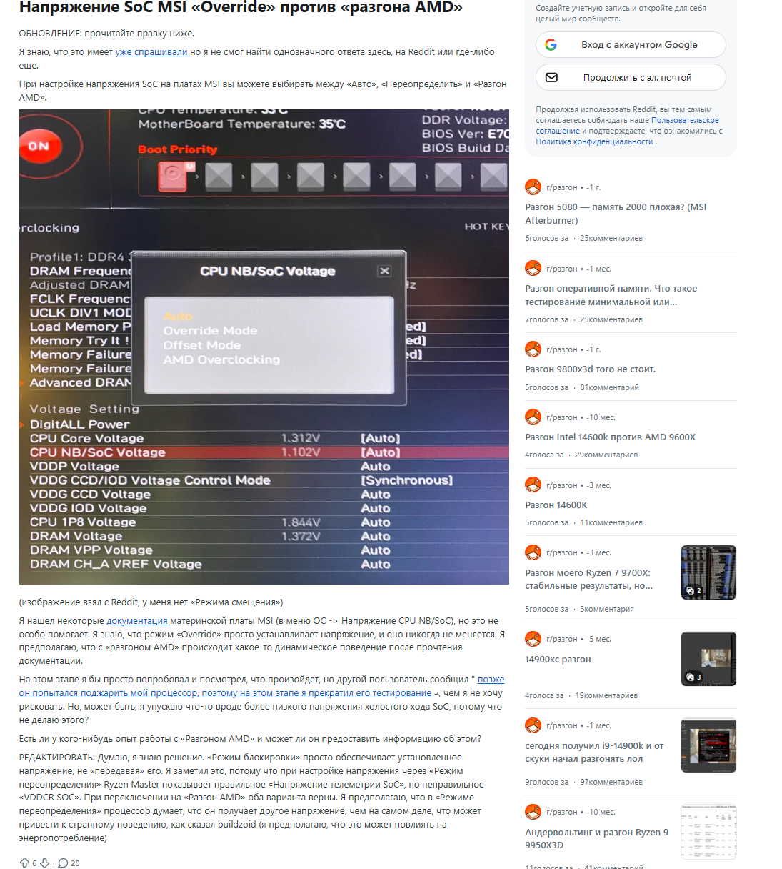 Правильно ли то, что в Bios для материнских плат от MSI надо выбирать AMD Overclocking вместо Override Mode как советует тот же именитый Buildzoid на Реддите по ссылкеhttps://www.reddit.com/r/overclocking/c ... rclocking/ ?
