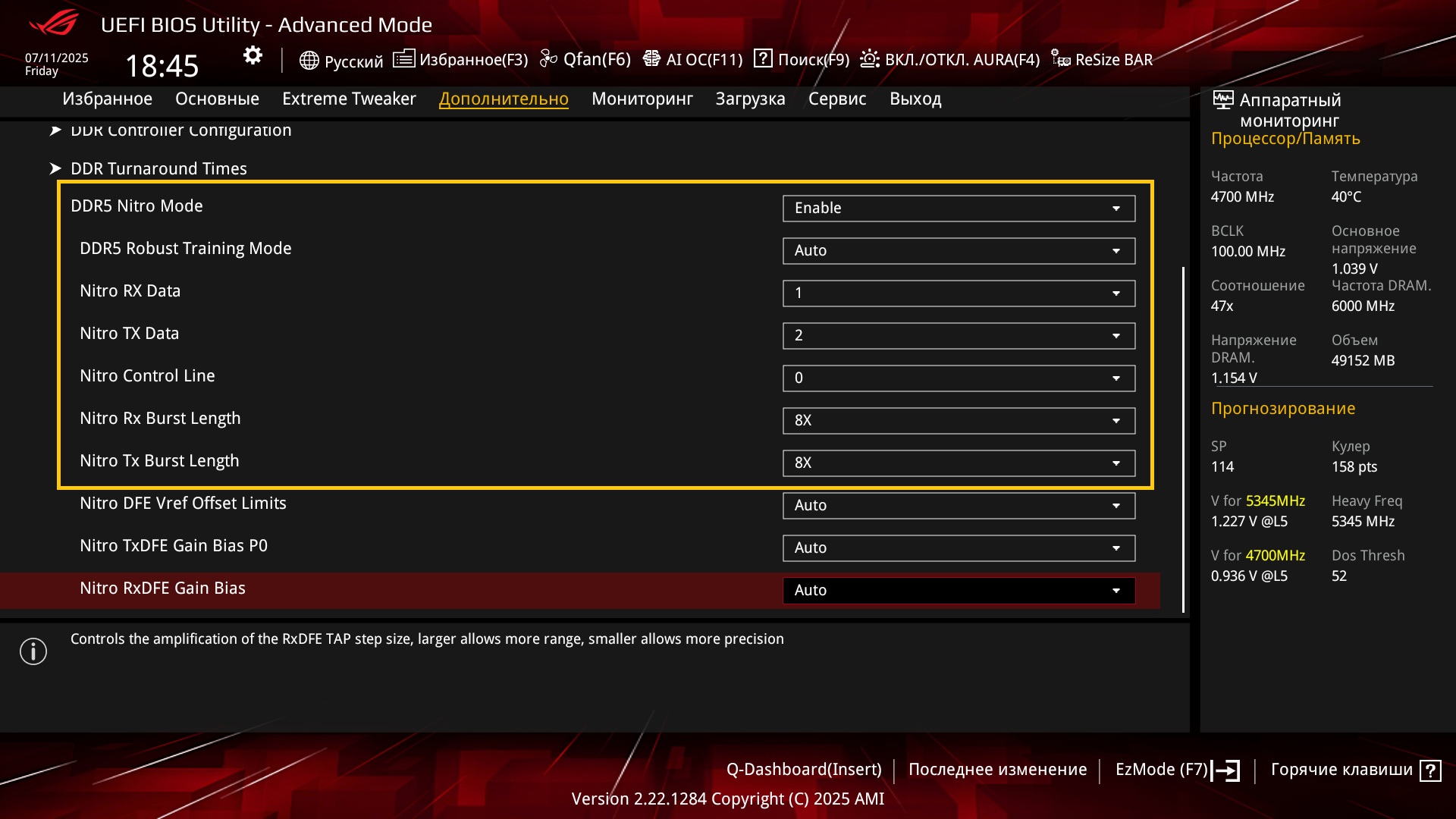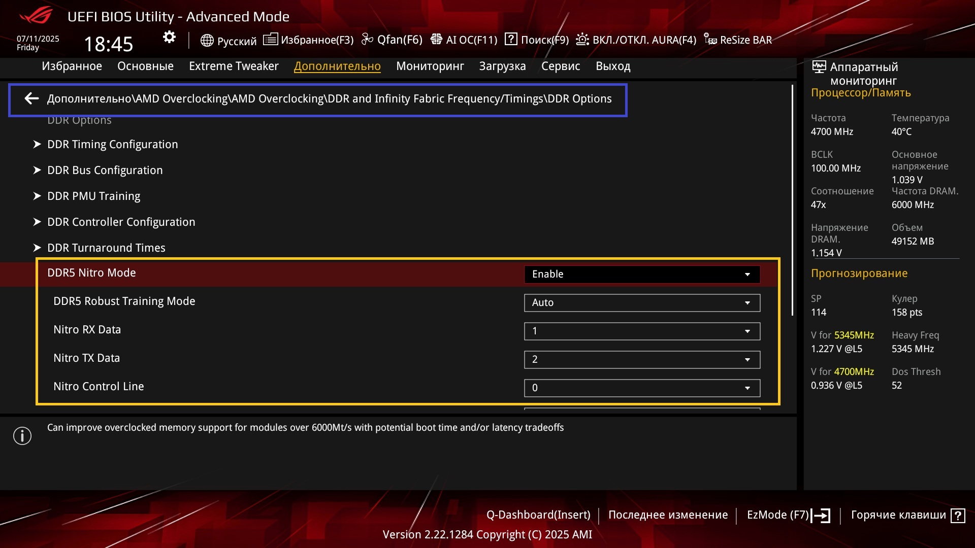 Там либо прописывать либо выбирать из выпадающего списка, например у MSI выбираешь значения из выпадающего списка. При этом у MSI также если нажать в Bios на значок лупы (поиск) и написать Nitro или Nit, то тоже ничего не находит и поэтому надо вручную искать раздел с настройками Nitro, о чём и писал в сообщении DDR-5 на платформах AMD. Статистика разгона, советы, обсуждение результатов. #18638067