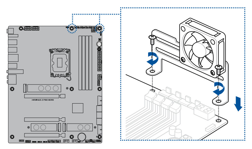 Эта примитивная конструкция(без вентилятора) идёт с платами ASUS, но может кто-то встречал в продаже нечто похожее? Нужна именно такая реализация, с фиксацией на стандартные болты крепления платы.