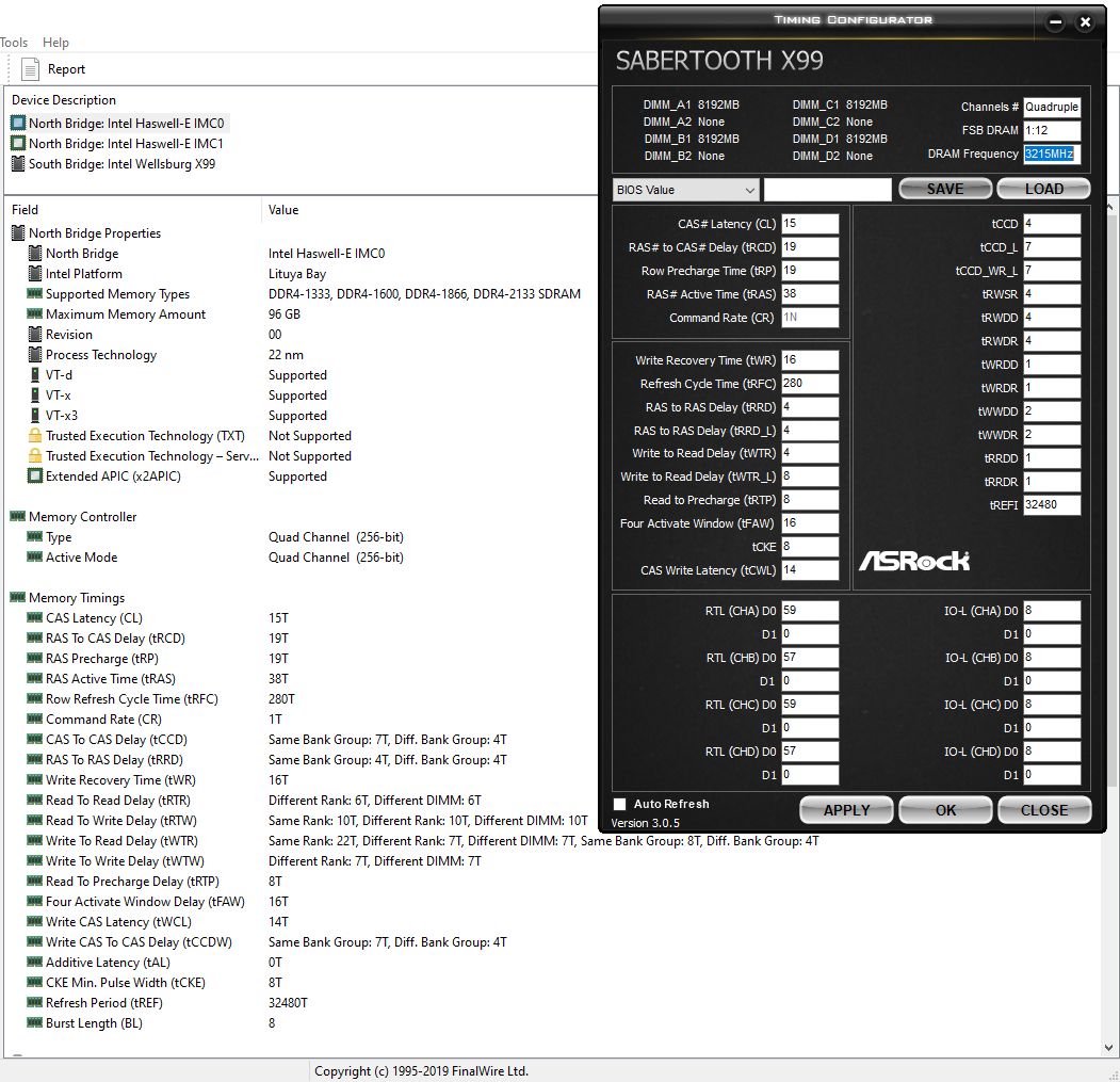 Разгон памяти у современной DDR4 (16 банков,RRDS=4,FAW=16,BL=8) эффективен только при tRC<=64,если каждый новый блок чтения происходит с разных банков памяти. Для 4-х слотовых плат при разгоне желательно в биосе отключить неиспользуемые слоты. Предположительно для максимальной производительности памяти значение tRFC в тактах для 8-Гбитных чипов должно быть кратно 8,а для 16-Гбитных чипов - 16. Если это правило не соблюдать, то будут вставлены лишние такты при каждом цикле обновления памяти. Для желающих максимально снизить tRFC. Делим tRFC на сумму tRCD,tRTP и tRP. Если результат ближе к 4, то снижать tRFC можно по 4 такта. Если результат ближе к 2, то снижать tRFC можно по 2 такта. Это связано с тем, что обновление происходит субмассивами, которые обязательно кратны 2.