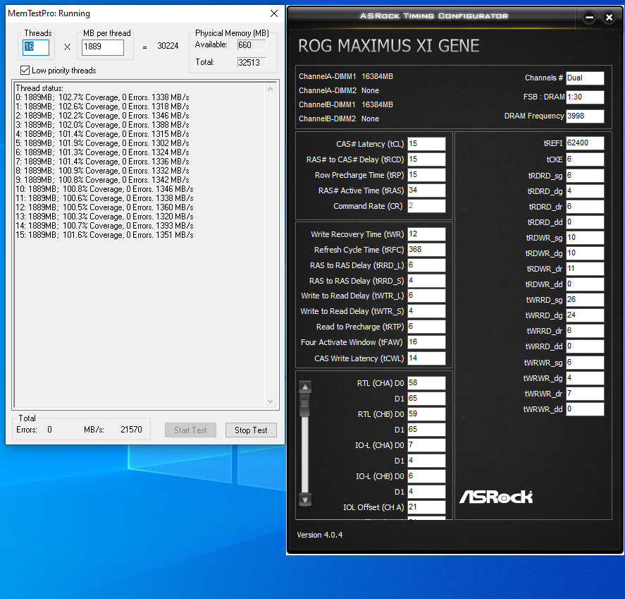 Разгон памяти у современной DDR4 (16 банков,RRDS=4,FAW=16,BL=8) эффективен только при tRC<=64,если каждый новый блок чтения происходит с разных банков памяти. Для 4-х слотовых плат при разгоне желательно в биосе отключить неиспользуемые слоты. Предположительно для максимальной производительности памяти значение tRFC в тактах для 8-Гбитных чипов должно быть кратно 8,а для 16-Гбитных чипов - 16. Если это правило не соблюдать, то будут вставлены лишние такты при каждом цикле обновления памяти. Для желающих максимально снизить tRFC. Делим tRFC на сумму tRCD,tRTP и tRP. Если результат ближе к 4, то снижать tRFC можно по 4 такта. Если результат ближе к 2, то снижать tRFC можно по 2 такта. Это связано с тем, что обновление происходит субмассивами, которые обязательно кратны 2.