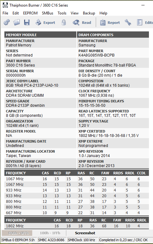 Доброго времени суток всем. Подскажите в какой программе можно глянуть тип чипов памяти оперативки, для Ryzen DRAM Calculator. В CPU-Z и Аиде в SPD показывается только производитель Hynix, а какая она MFR, AFR, CJR ? Модули эти Patriot Viper 4 16GB XMP 2.0 K2 Kit (2x8GB) 3200Mhz RAM.