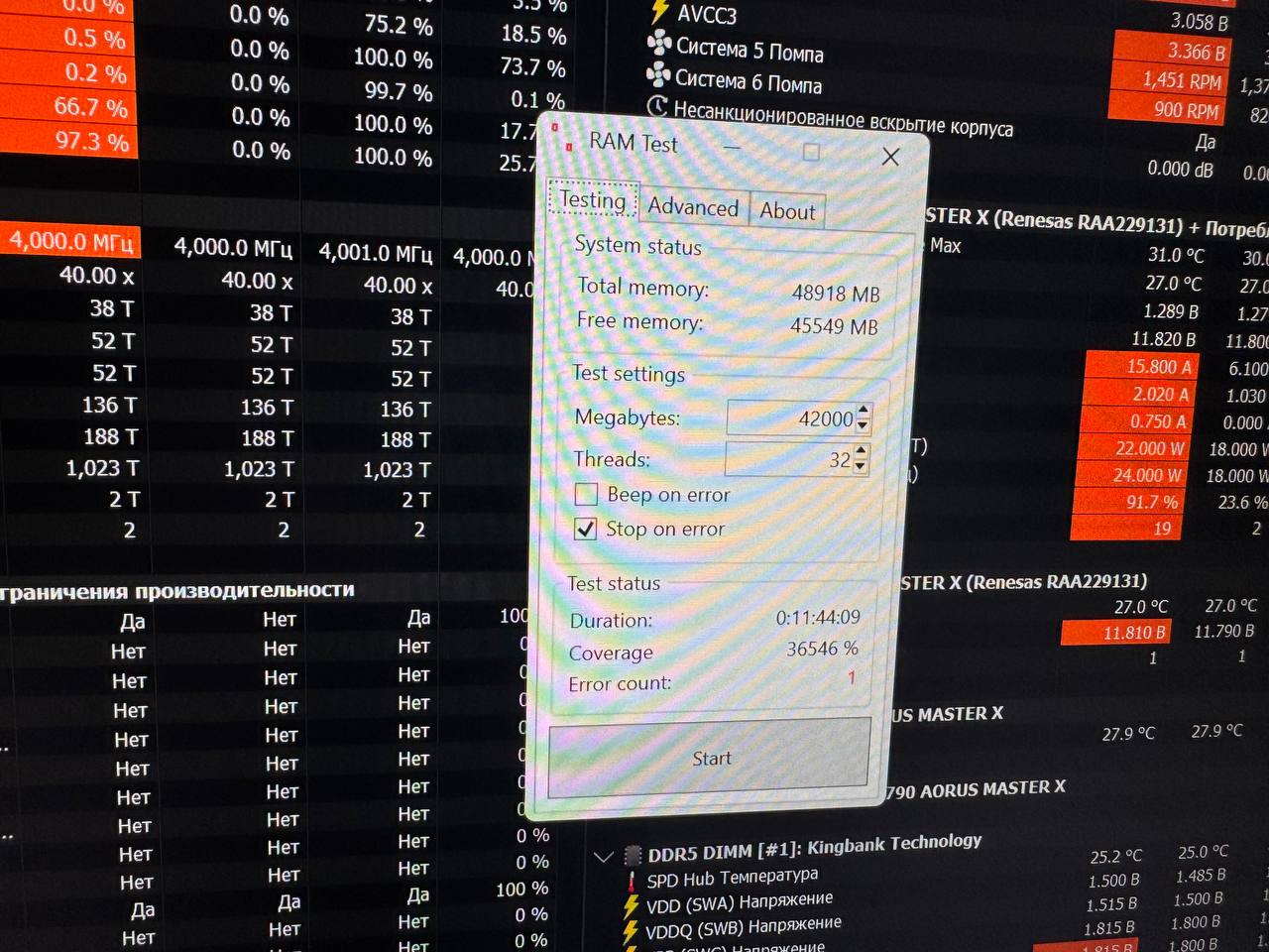 Вот пример многочасовой прожарки на заведомо нестабильных настройках: