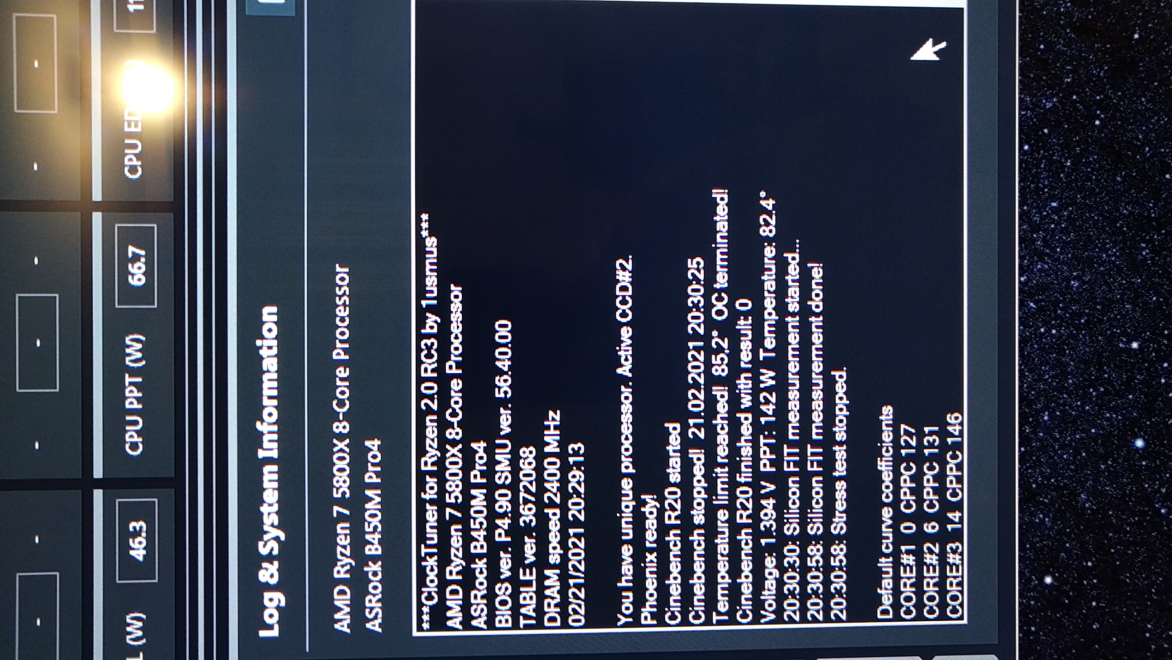 Начал потихоньку отстраивать копеечный c-die на компе жены. Так вроде бы стабильно - крутит ТМ5, блендер, сайнбенч, корону, аиду, оставлю ТМ5 на ночь ещё... Только почему-то показывает высокий soc, хотя он выставлен на 1.125.