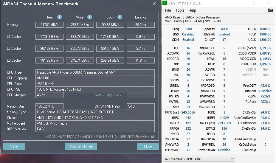 занятно. на 1700 райзене максимум получал 3133 при 1.46в и таймингами не сильно ниже данных тут. перешел на 5600Х и вот тебе на. двуранг, 2400, E-Die, качнулась до 3600.... и тестмем проходит (3 часа крутил) и линкс (10 проходов при 12гб)... 1.43в напруга