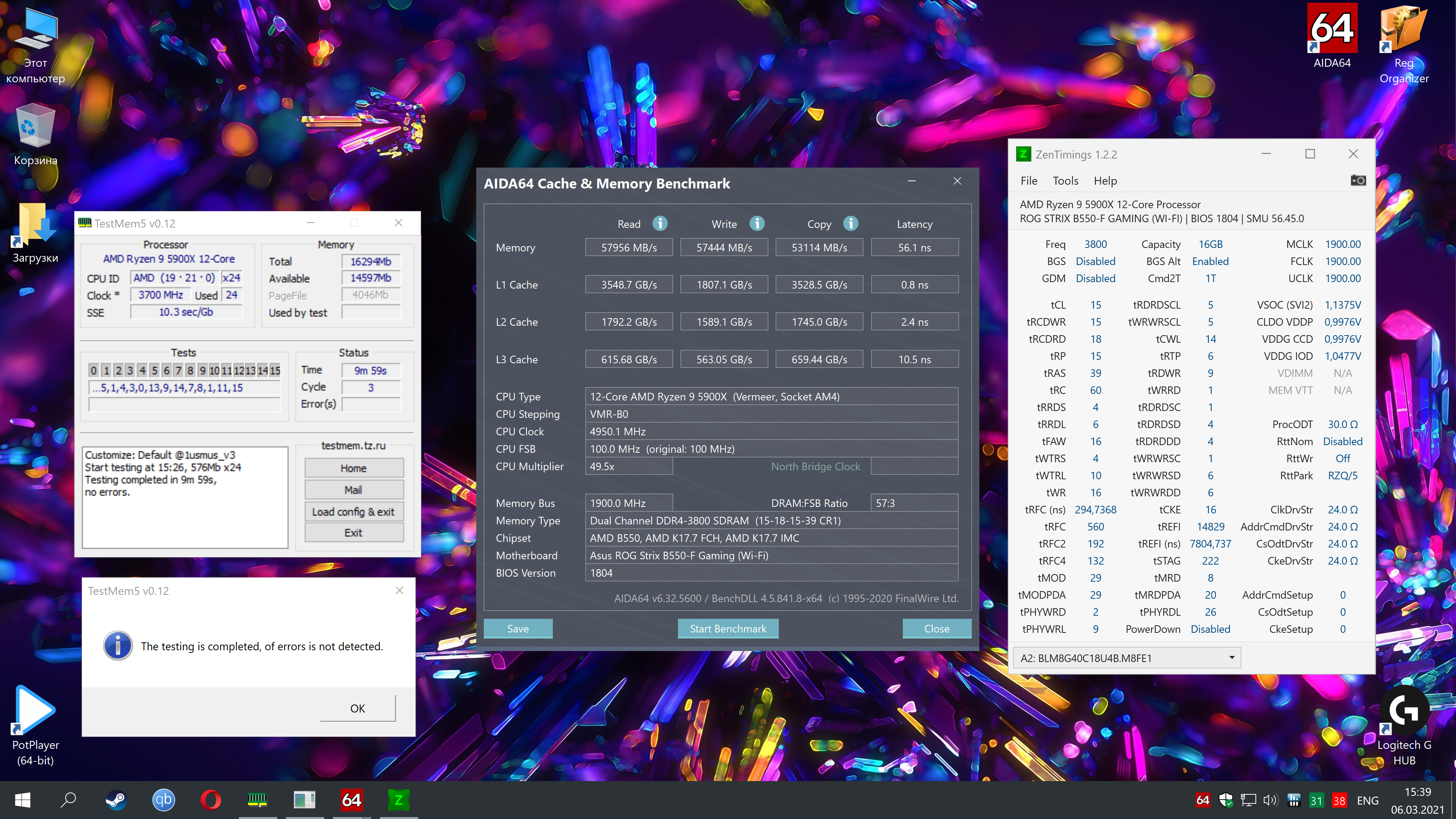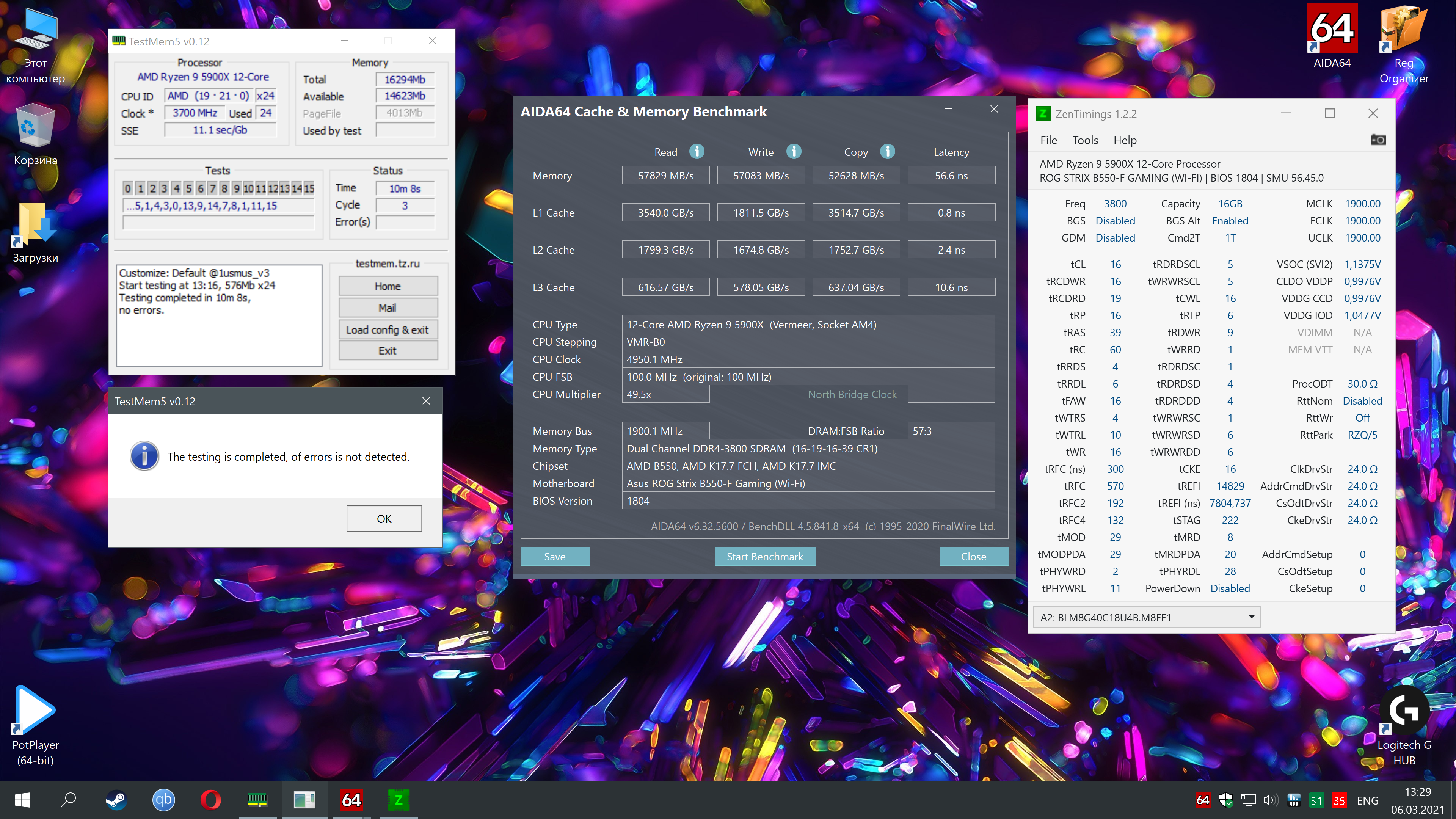 P.S. Память Team Group Dark Pro DDR4-3600 CL16 (16-16-16-16-36, Samsung B-die).