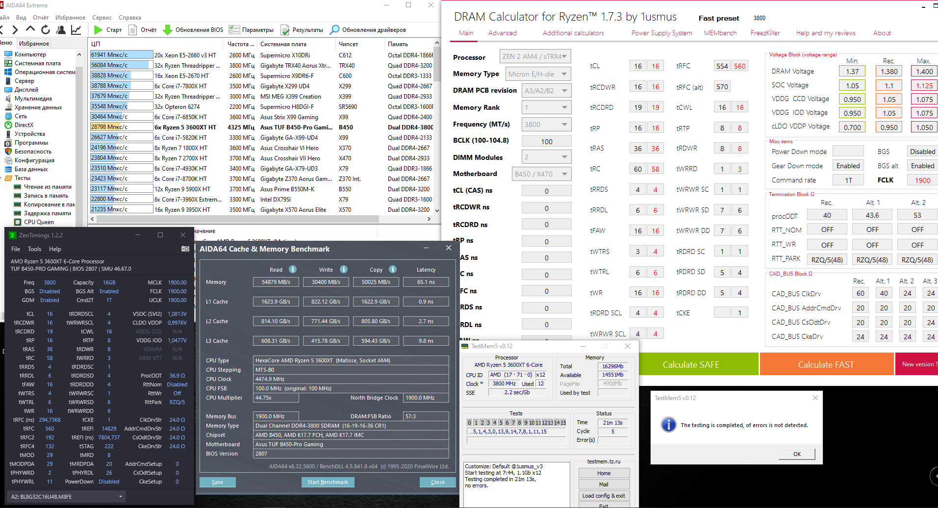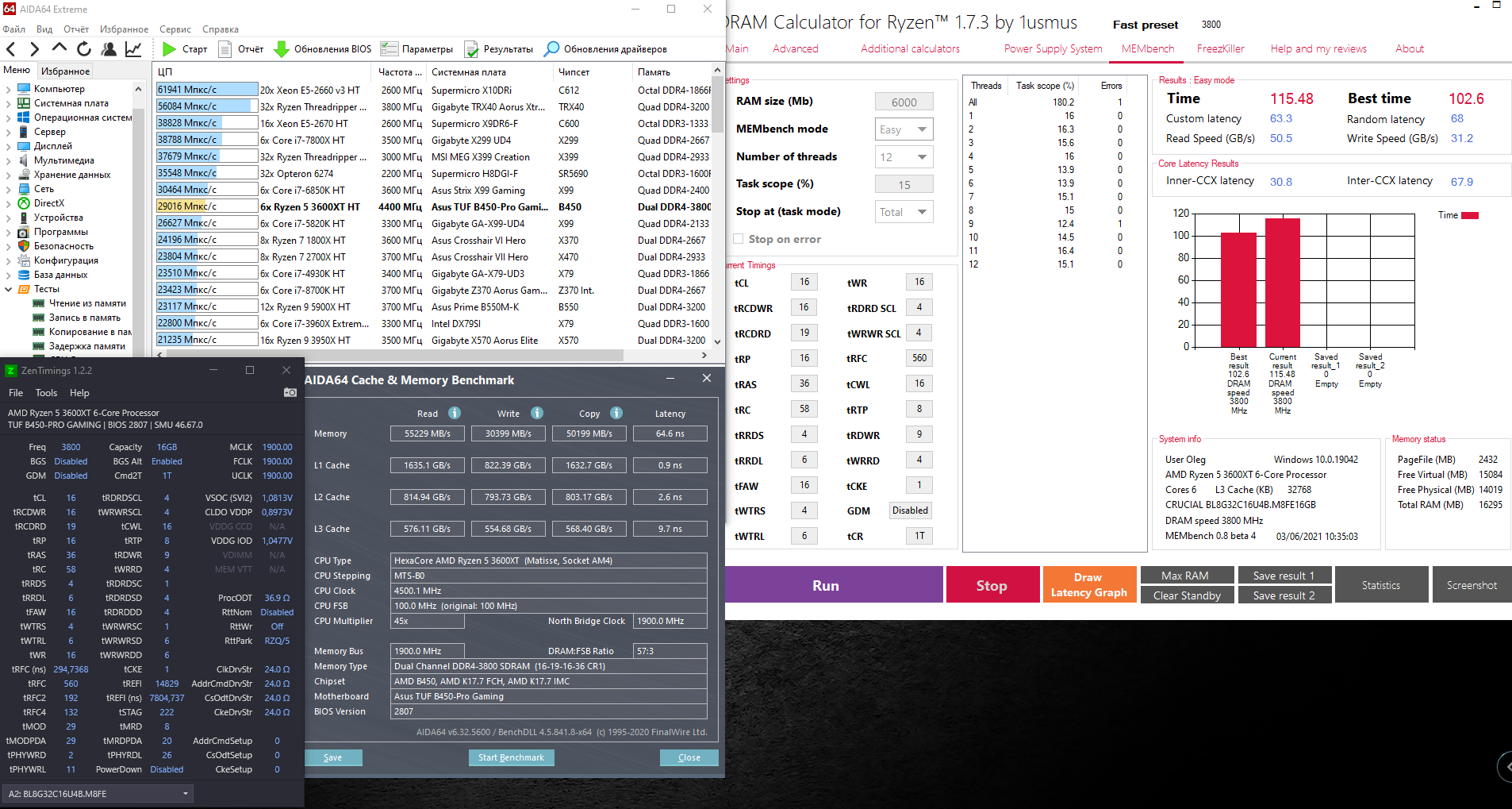 Комментарий к файлу: AIDA64 CPU PhotoWorxx, ZenTimings, DRAM Calculator DRAM_CL15_3800.jpg [ 665.12 КБ | Просмотров: 769 ]