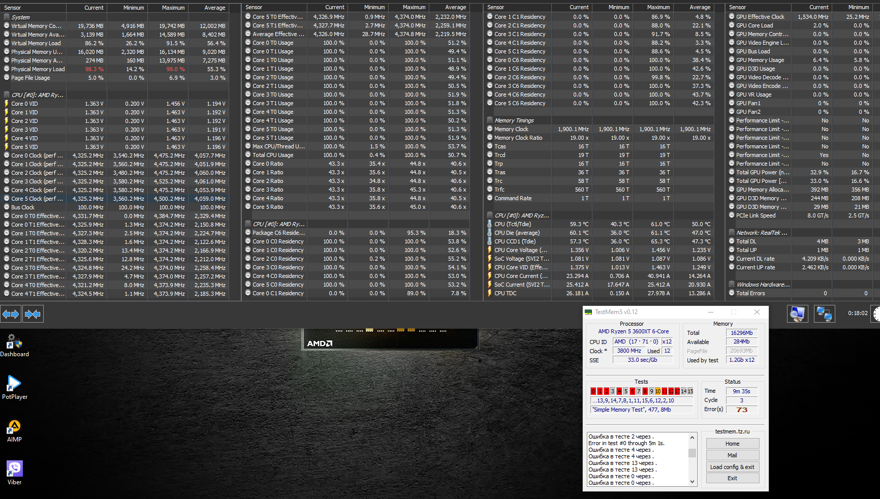 Странный у меня процессор, и 2000 по IF берет, но whea валит даже в простое десятками, в тм5 тысячами. Чуть меньше только при 1.25В Vsoc (выше не хочу ставить даже для теста). AMD чисто теоретически может в 3600 ставить отбраковки 5600?