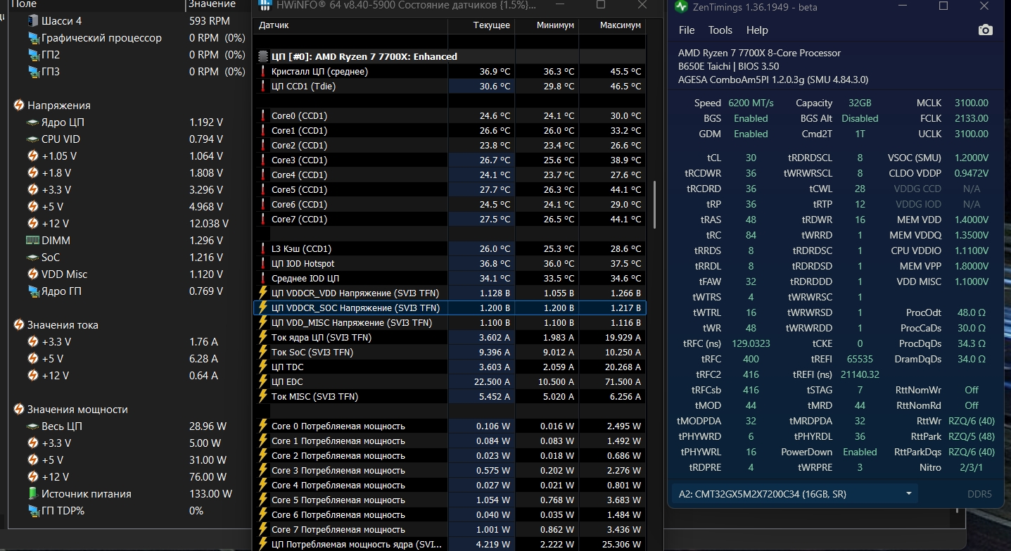 vsoc=max=1.3v на 7800х3д ни к чему. В курсе, почему на выходе они на асусах дохли? Так что лучше понты вроде gdm off прибрать и подогнать тайминги под макс.
