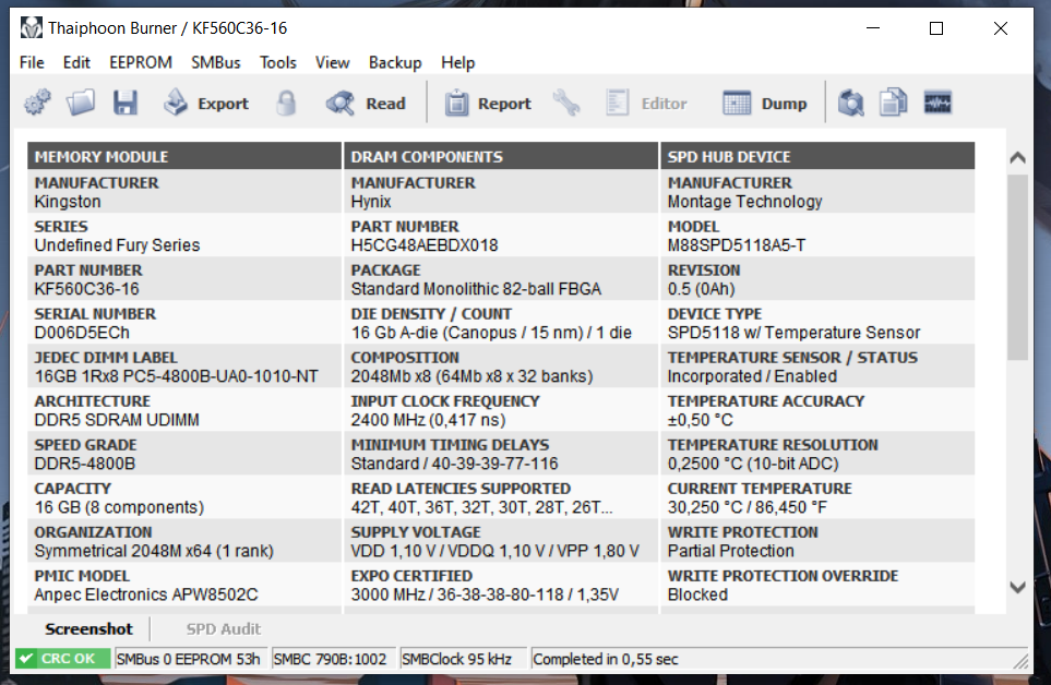 Приобрел для сборки 2 модуля по 32гб Patriot Signature Line [PSD532G48002] в днс. Думал будут обе плашки на hynix m-die (фото в днс кажет что чипы такие), но увы из тех 3 штук что были в городе только одна планка hynix и 2 которые взял на spectek micron, не видел смысла брать 1 hynix и 1 micron. Знаю из инета что чипы микрон донные, но дешевые oem были только в днс, и была все таки надежда что приедут hynix так что если будете их брать то заказываете несколько и смотрите что за чипы в магазине.
