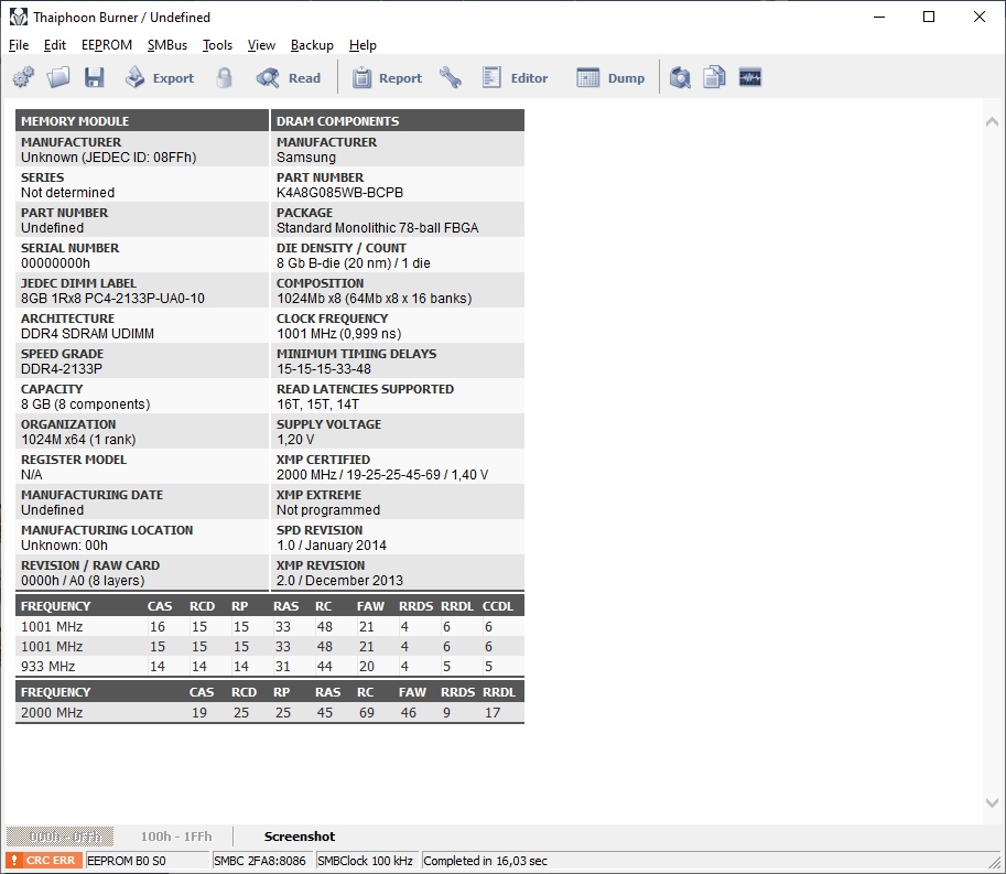 Не плохой редактор таймингов для DDR4 модулей, который автоматически правит CRC в случае изменения таймингов и поставляется вместе с японским программатором SPD для DDR4 DIMM: http://www.century-micro.co.jp/download