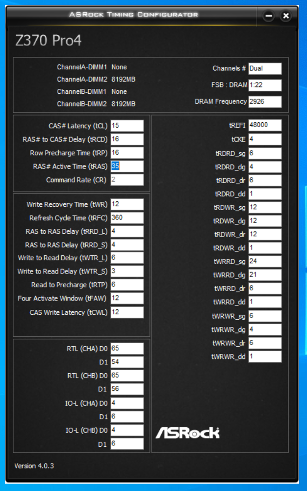 Спасибо за ответ tRFC ниже 360 не заводится и то с относительной стабильностью (больше 3х часов мемтеста не проходит) CCDL сейчас стоит 7, с значением 6 на тестах уже через минуты 3 вылетает ошибка RDWR можно попробовать конечно RTL IOL ниже этих значений мать в авто выставлять не хочет