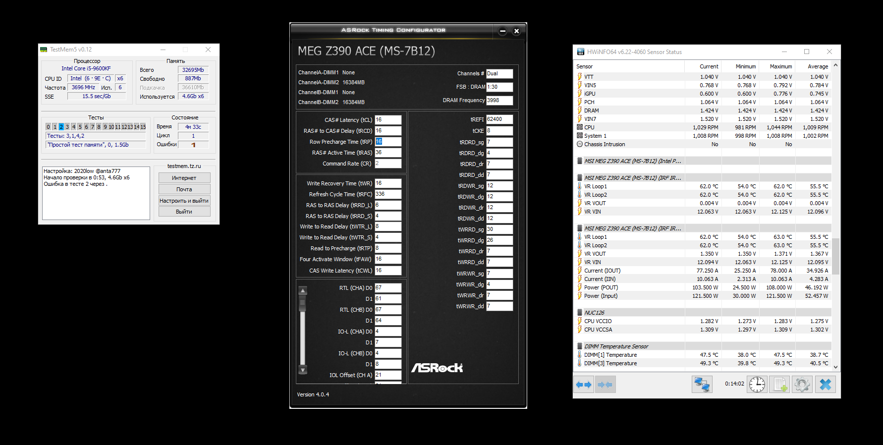 Добавлено спустя 8 минут 27 секунд: Со значением tRFC=336 ошибка уже на 4ой минуте