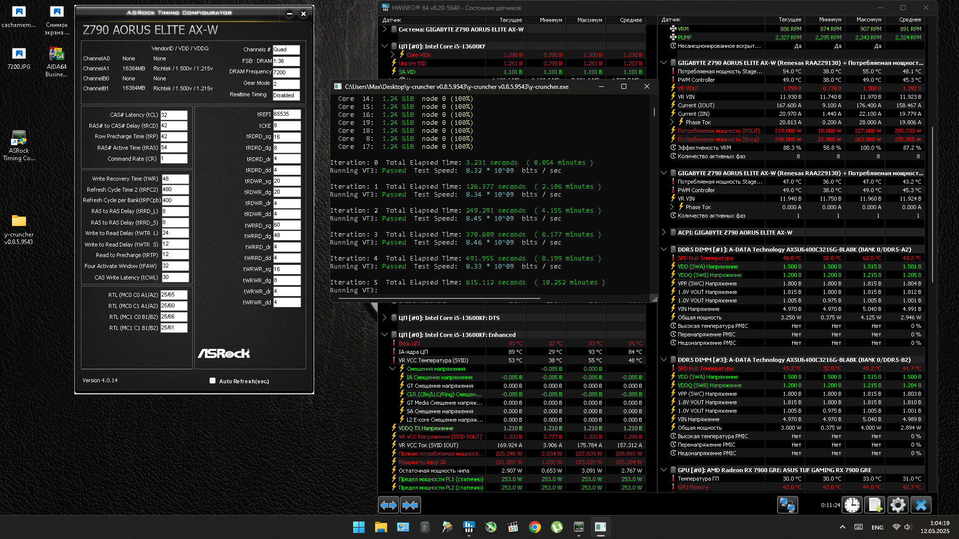 Отстроил проц (чуть не спалил), частично увеличил лимиты - частично снял, на Р ядра частоту поднял на 100мгц, Е сток., фикса напруги нет. Энергопотребление упало: Vt3 184w, R23 171w. , Vids и Vcore в тестах 1.174 и 1.168. Ddr 7600 36 46 58, Vdd2 авто 1.396, ТХ 1.330, Vdd/Q 1.45/1.36, Vpp 1.815. До настройки проца SA было 1.21, после настр Цп тесты ддр крашились, увеличил SA до 1.23, тесты пошли. Требуется ли мне снижать Sa, искать наименьшее значение между 1.23 и 1.21? Или оставить так?