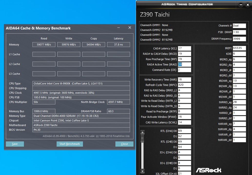 Круциалы 4000 работают на 18-19-19 на 1,35в а 4400 только CL19 указали, но тоже на 1,35в даже на 16гиговых планках, учитывая новые мощные радиаторы на 1,5 может смогут 5000