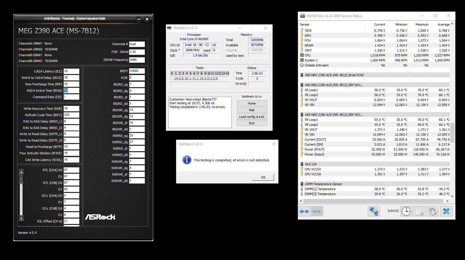 anta777, я кстати тебе не писал, но вот когда у меня было настроено на 2933, я прогонял и экстрим и еще 2 твоих теста были (ты кидал тут ссылки) там в названии еще было 2020, так вот, тот, который был легкий (6 минут), он и экстрим не показывали ошибок, а тот, что 35 минут делался, с ником 2020, он иногда выбивал 1 ошибку, я подумал, что он не правильно выбивал, так как все остальные норм, да и он выбивал не всегда, через раз, а потом, когда через пару дней игра фризанула жестко в кс го, то я понял, что на 2933 первички 16-16-16 мои плашки не тянут, вот так вот!