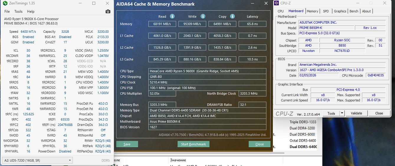 Всем привет, я тут уже писал, но никто особо не ответил на вопрос. Процессор: amd ryzen 7 9800x3d, мат плата: asus rog strix b850f gaming wifi. И у меня такая проблема, что при изменении настроек оперативной памяти, неважно вручную или включение xmp система перестает вести себя стабильно, не то что там крашится, нет просто появляется задержка и бывают просадки, когда в jedec их там нет. Так же показательно, что в кранчере скорость теста начинается 9.63х10^9, потом может дропнуться до 9.09х10^9. Самое интересное, на плашках есть хмр 4800 с таймингами 38. И даже там такая же фигня. Какая-то проблема с биосом я так понимаю, но не понимаю как её решить. Биосы раньше версии 1066 с версией agesa 1.2.0.3e установить не даёт даже через bios flashback, если пытаешься установить более раннюю версию bios чем 1066. Может была у кого такая проблема, или знаете как решить. В целом это не критично, тут больше интересно в чём всё таки проблема.