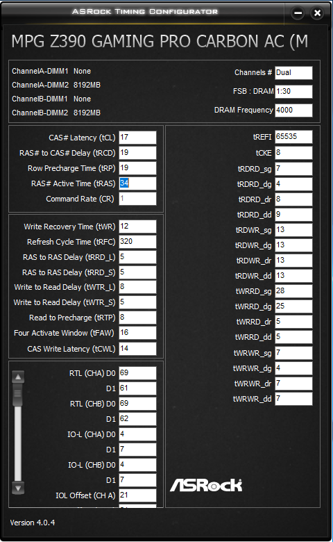 Начните с RCD, CL. Не обязательно должны быть одинаковыми, обычно CL идёт меньше чем RCD. RAS сразу пробуйте как RCD+CL+4, до этого значения от него существенная разница, дальше меньше. CWL<=CL. Допустимые значения 9,10,11,12,14,16,18,20. RP можете выставить по RCD, если пойдёт меньше - тоже неплохо, не уверен правда насчёт смысла. RTP без формул. Если не идёт вниз можно попробовать поднять чуть чуть RP. В DDR4 явно связан с WR соотношением 2 к 1 (например WR20\RTP10), физически хранится одно значения и в зависимости от операции интерпретируется. Скрутите FAW до 16(так и оставьте если работает). С таким FAW скручивайте RRD(оба, L обычно больше чем S), возможно поедут на 4 оба. Если до 4 не удалось спустить поднимите FAW до уровня RRDL*4 и попробуйте ещё, хотя это скорее всего уже почти предел. Обычно L>=S. L - SG(Same Group). S - DG(Different Group) Напр. RRD_L>=RRD_S. CKE=5 СCDL>=4 RDRD_DD и прочие подобные можно проигнорировать если у вас нет двух планок на один канал (4 планки). DD-Different Dimm. Тоже самое с DR-Different Rank если у вас одноранговая память. RDWR_SG(DG) и подобные сочетания скручивайте до минимальных рабочих, потом накиньте сверху +2. Как уже отметил обычно SG>=DG. WTR не трогайте он сам спустится когда будете скидывать WRRD_SG(DG) и прочие подобные. Если сам меньше не стал тогда руками скидывать. WR снижать через WRPRE если есть. Если нет или не снижает WR, То скрутите его скажем до 12 или +4 от рабочего, потом дожмёте если не лень будет. RFC явных формул нет, крутить после всего списка сверху. Не пытайтесь найти его минимальное значение если не хотите чтобы память начинала сыпать ошибками от любого чиха. найдите пограничное со стабильностью значение и накиньте сверху 20 или сразу 40. Может реагировать на RAS+RP, RRD, FAW, причём в обе стороны (то есть может "сломаться" если задрать названные), а может и не реагировать... REFi больше лучше. Связан с RFC. REFI сколько память "работает" - RFC сколько "отдыхает". Оба тайминга лучше не пытаться найти предельное значение.Заметно реагируют на температуру. Многие тайминги отзываются и на температуру и на напряжение. Поскольку напряжение может как позволить снизить тайминг, так и увеличить температуру, то середину можно искать очень долго, поэтому лучше бы вовремя остановится. Тестируйте тщательно с перезагрузками, сном, холодным стартом. RTL и IOL вам кто-то другой пусть советует как настраивать, от них у меня голова болеть начинает...