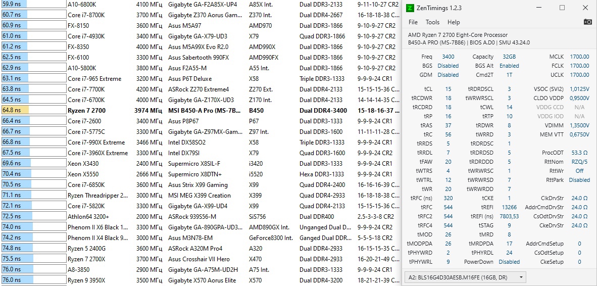 у него 2700x с частотой 4200,в без режиме запусти будет ниже,так же power down отключи если включено,хотя скорее всего оно уже выключено посмотрел таблицу,валидаций и ссылок нет,я бы не стал доверять тому что там написано