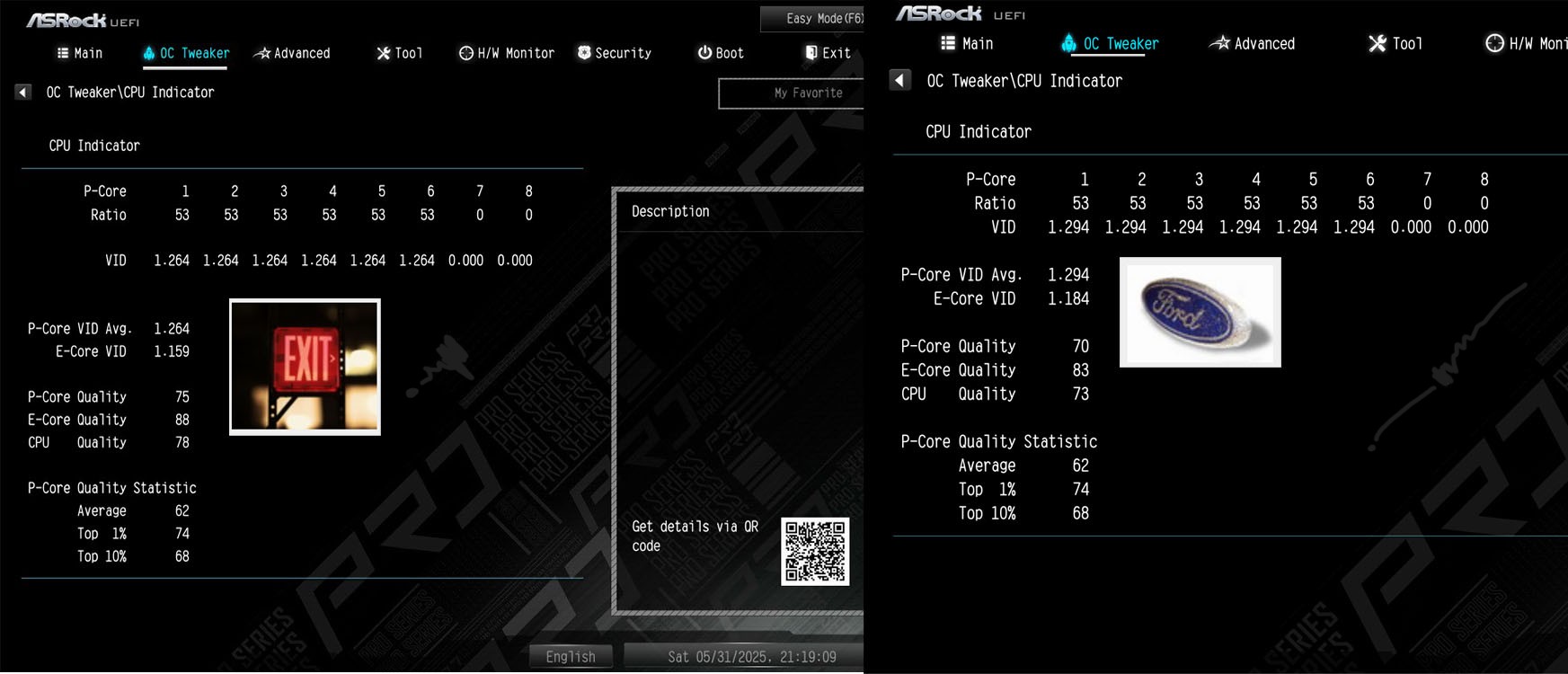 зы В общем, финалочка получилась на Асрок Про РС ВФ. Профиль проверен восстановлением из делофт настроек биоса, и сразу, и с кручением треньки, в общем, все 100% рабочее на этом комплекте.