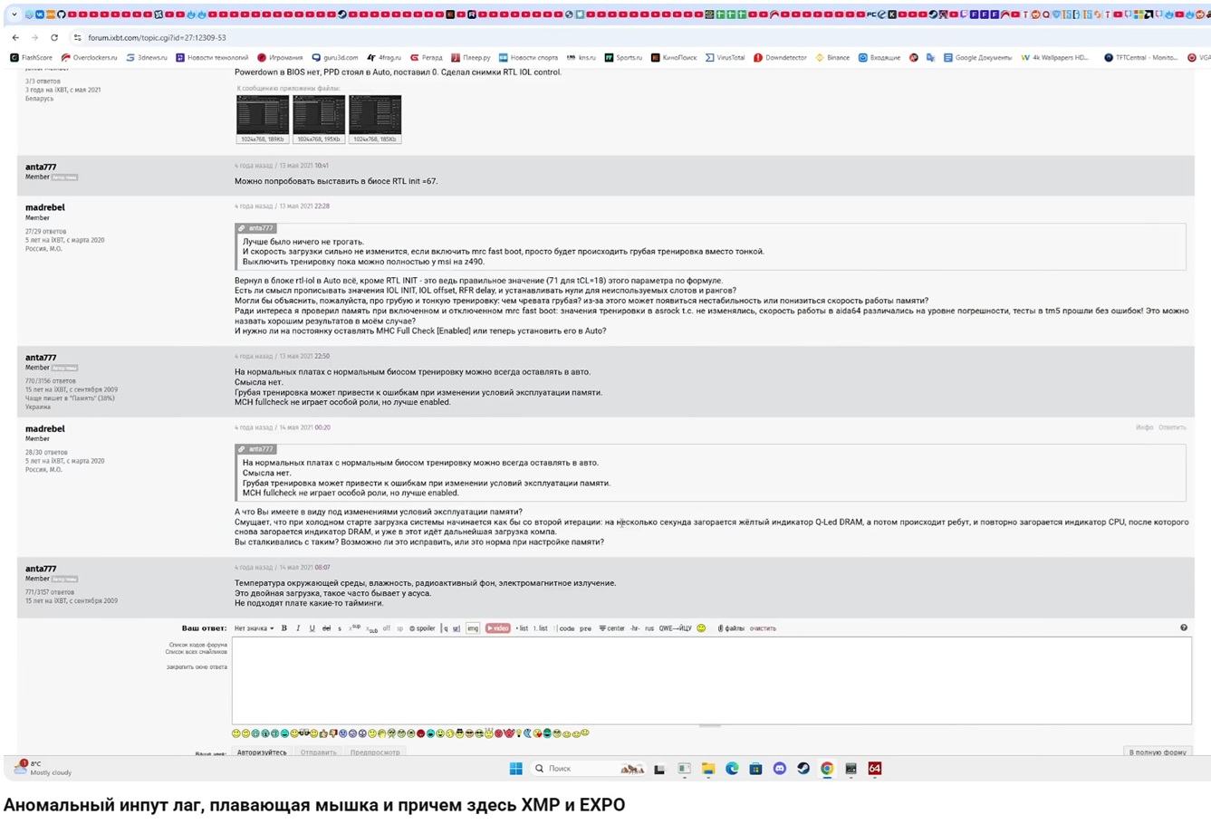 Скрин с пруфами из видеоролика "Аномальный инпут лаг, плавающая мышка и причем здесь XMP и EXPO":