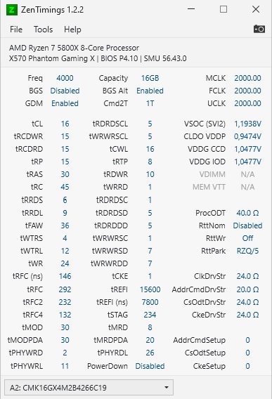 Доброго времени суток. Подскажите пожалуйста, какие параметры по памяти можно ещё оптимизировать? CL ниже опустить не могу, даже при напряжении 1,5 и частоте 3800 CL 14 начинает сыпать ошибками. Сейчас DRam voltage 1.398