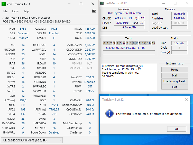 Kiskik ещё одна странная память Нужно вторичные поджать и первичные 16-16-16-34 я бы поставил, возможно и напряжение можно будет в районе 1.45 выставить тогда.