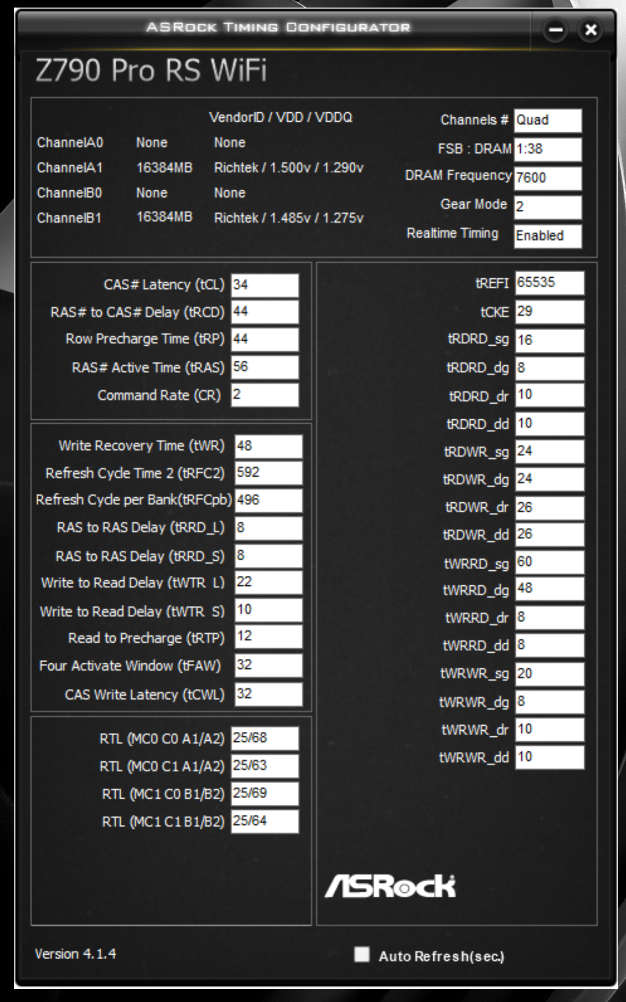 У меня вопрос по TXSDLL, разъясните пожалуйста. Как я понимаю TXSDLL входит в группу Self-Refresh Exit Timing Parameters, как и TXSR, TXPDLL. Какова зависимость (если имеется) между TXSDLL (self refresh exit to command requiring dll) и TXSR (время выхода из самообновления), а также TXPDLL? У меня сейчас стоит на 7600 - TXSDLL 2296 и TXSR 1119, TXPDLL 63, при этом TSR 32 (не активен для изменения), хочу понять это правильные параметры, с учетом того, что я TXSDLL с 2048 (auto) поменял на 2296?