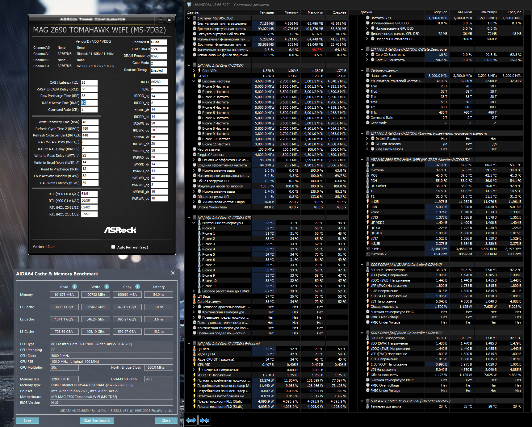 HertZ главное верить, что на 4димм плате 7к 2*48 работают)) devrus 6400 предел. Попробуйте 6200CL28-30. Хотелось объёма, получите минус в частоте. На 2 димм плате 2*32 6800-7000 было потолком. 7200-7400 были на какие-то мгновения стабильны только на самом деле.