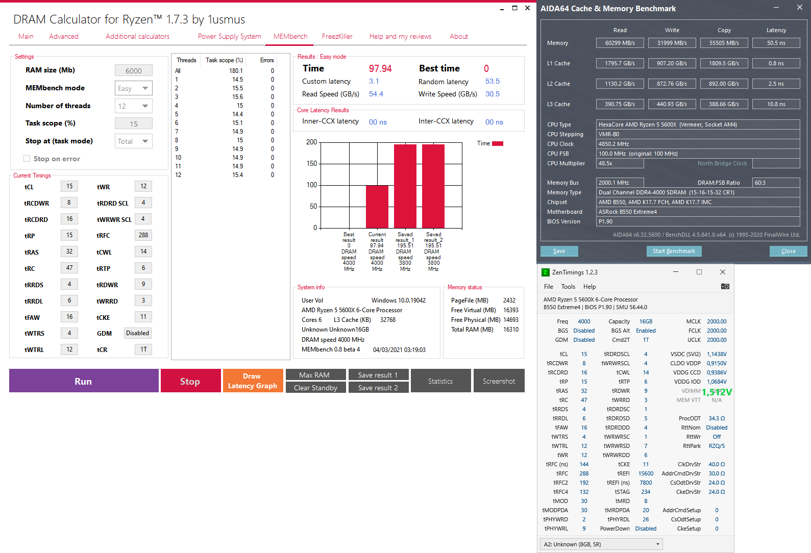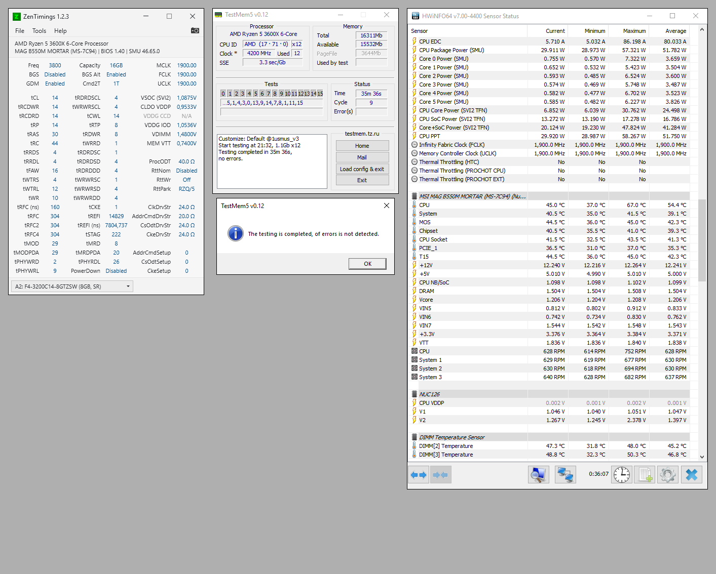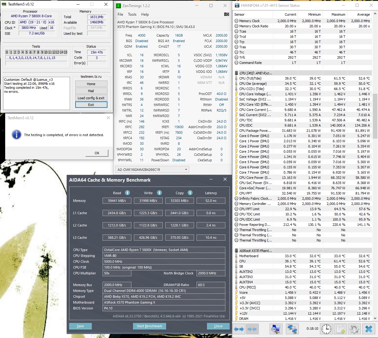 Решил остановиться на 4000 CL 16 и напряжении 1,422 (Хотя hwinfo показывает 1,416)