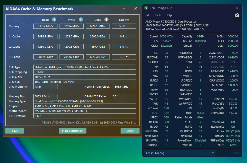 SHYNE, довольно странная конфигурация. Напряжение 1.4+ для 6000, vSoC как для 6400 и при этом GDM вкл. Пробовали вообще всё сбросить и на 5600 по джедеку проверить?