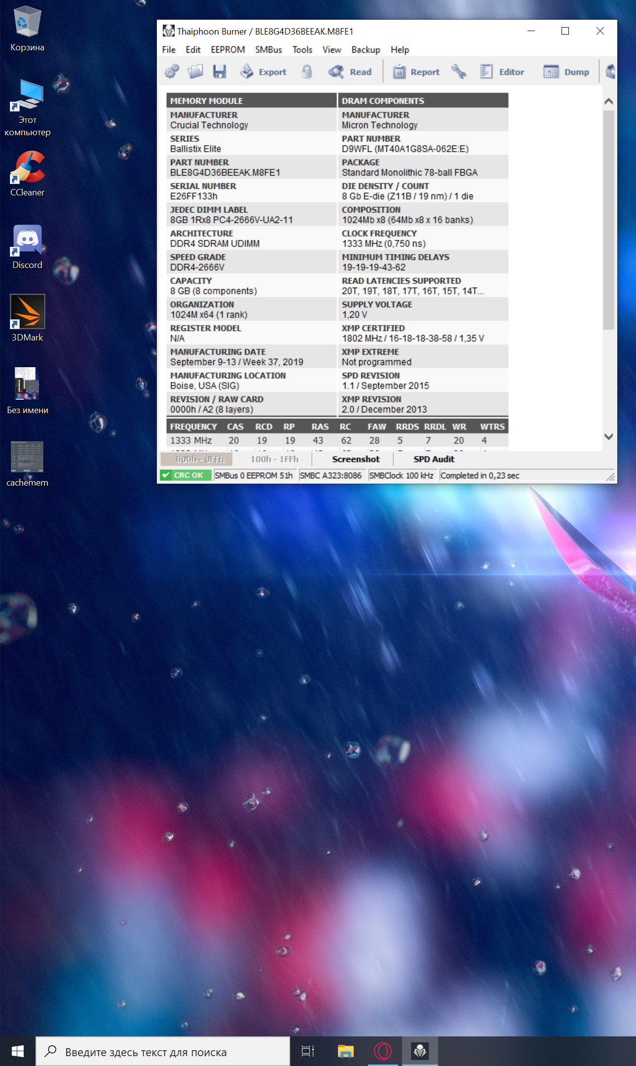 [img]Ссылка на скрин[/img] Для сбора статистики по установленным чипам памяти просьба прикладывать скрины программы Taiphoon Burner и указывать напряжения на DIMM, IO и SA![/color]