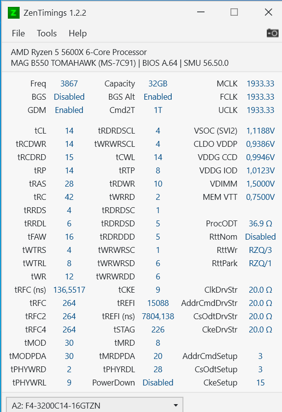 Касательно AddrCmdSetup CsOdtSetup и CkeSetup, то при включенном GDM они по нулям и все нормально, я когда их менял то исходил из этого: