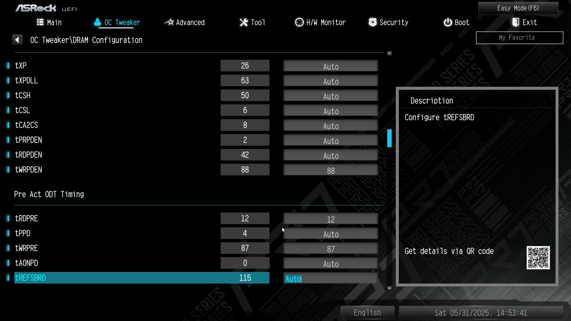 Понял, спасибо, а tREFSBRD конкретно, есть формула или кореляция? у меня есть такое значение, оно же с trfc2 или pb взаимосвязано? В авто плата выставляет 115 на 7600 34-44-56, trfc 592/496