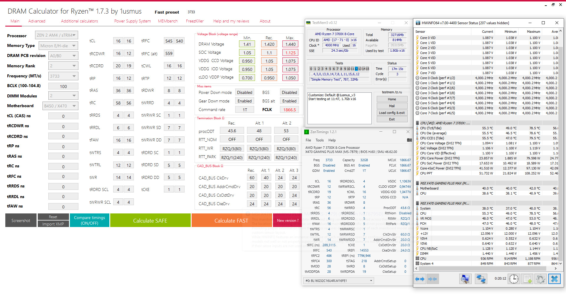 Купил две планки поштучно CRUCIAL Ballistix BL16G32C16U4R. Разогнал до 3733МГц т.к на 3800 даже в safe preset валят ошибки. Посмотрел XMP профиль у 16G36C16U4, мои планки не смогли на 3600МГц 16-18-18-18-38. Смог максимум выжать 3733МГц 16-19-12-12-36-56-540. Это нормальный разгон, или можно улучшить?